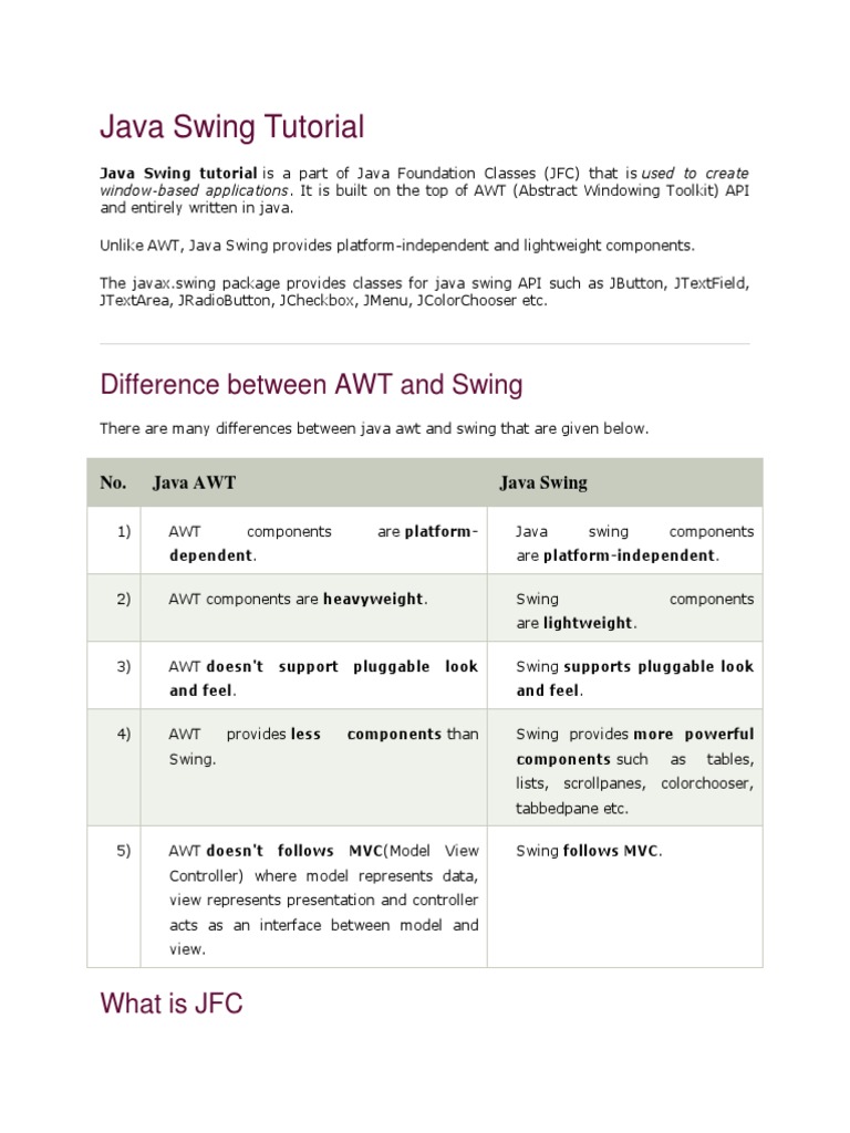 Java Swing Tutorial: Difference Between AWT and Swing | PDF | Object ...