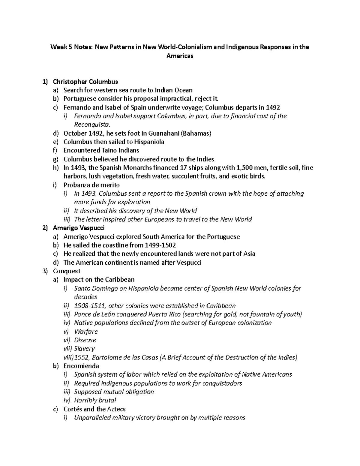 HST105 Notes Week 5 - Week 5 Notes: New Patterns in New World ...