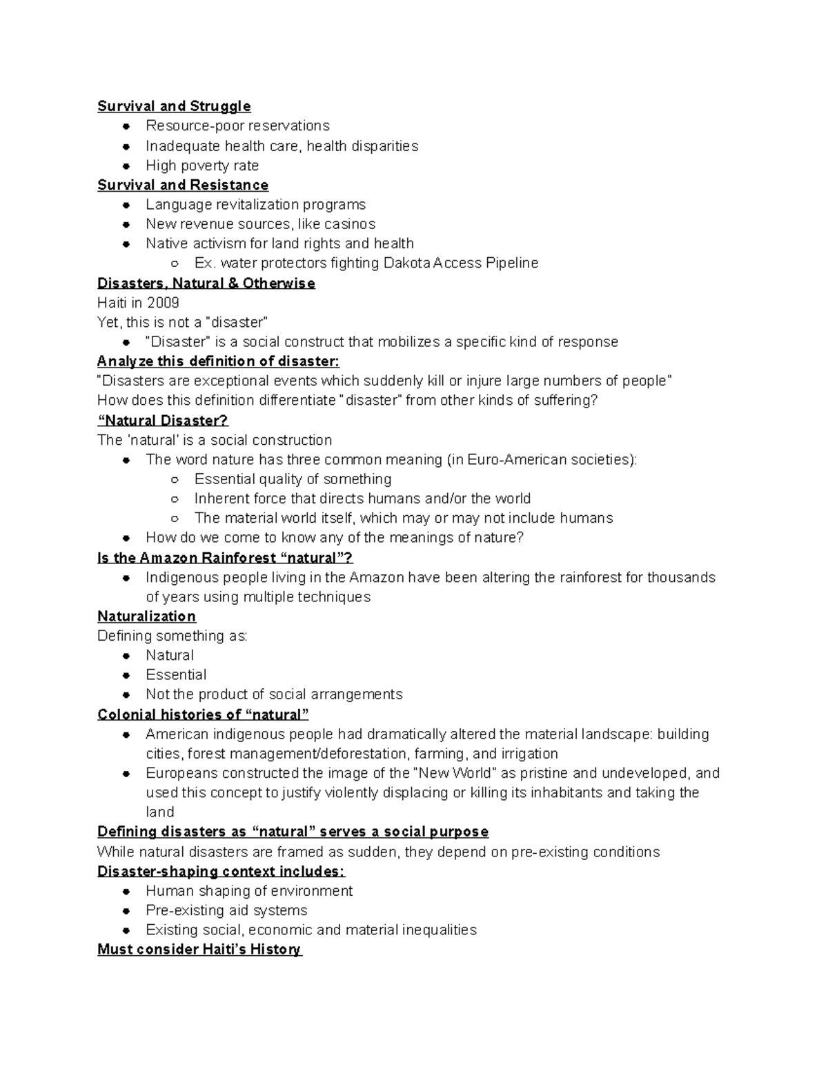 Week 9 Lecture 1 - Prof. Elana Buch - Survival and Struggle Resource ...