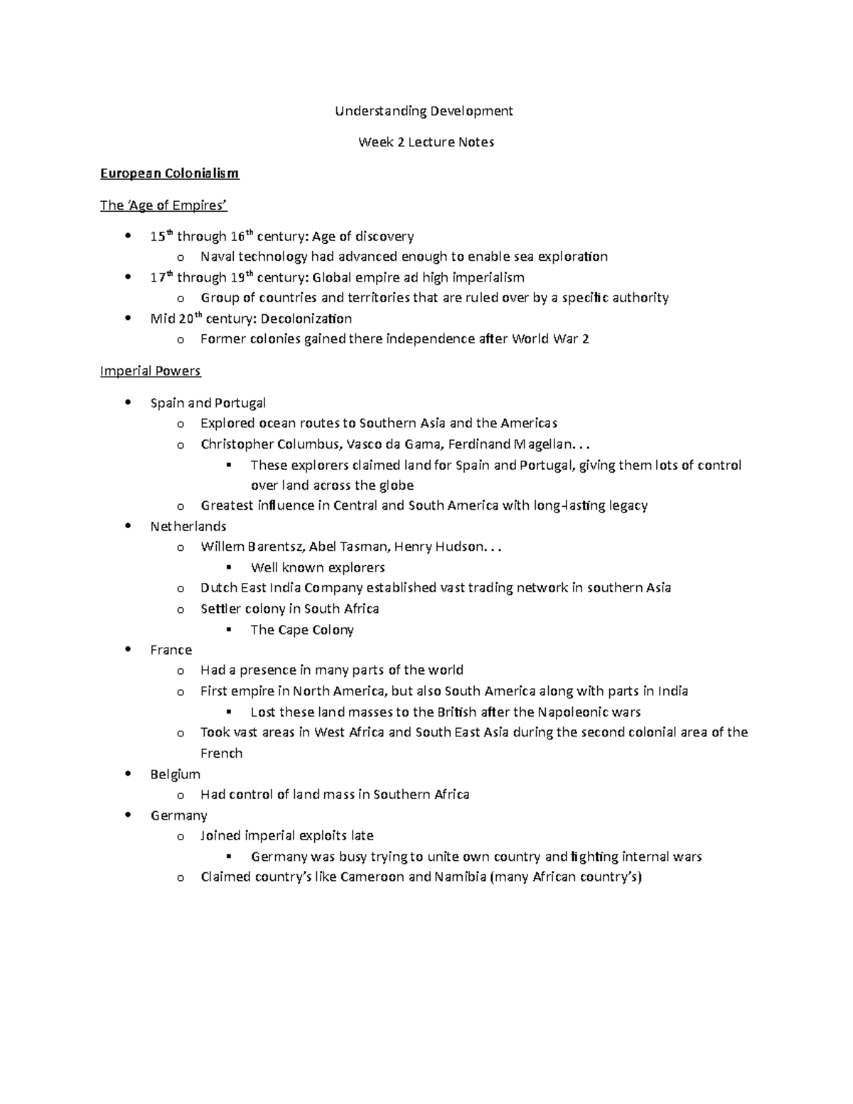 Lecture Notes 2 Imperialism and Colonialism - Lecture Notes Week 2 ...