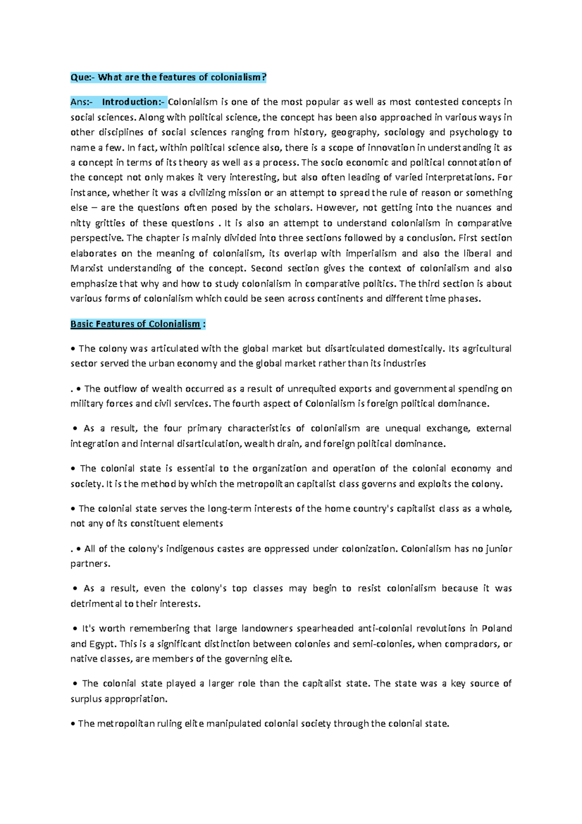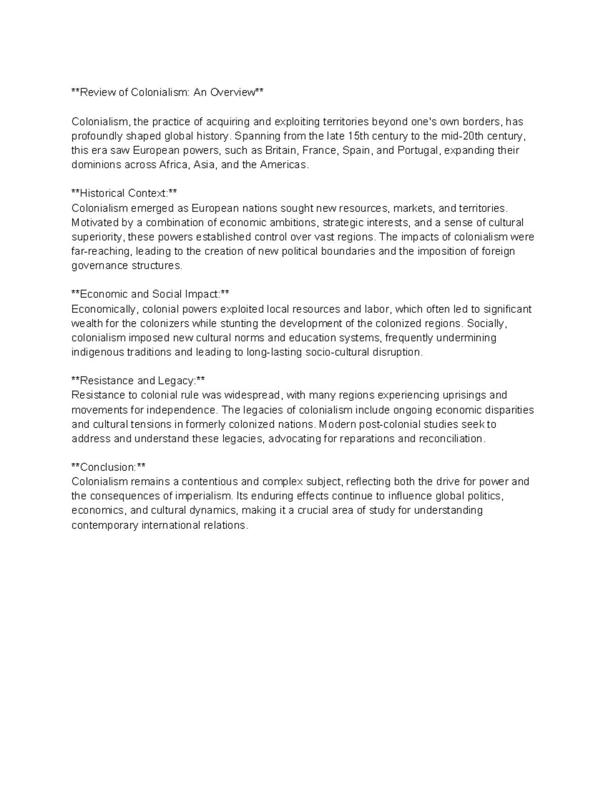 Colonialism: Historical Overview and Impact on Global Dynamics - Studocu