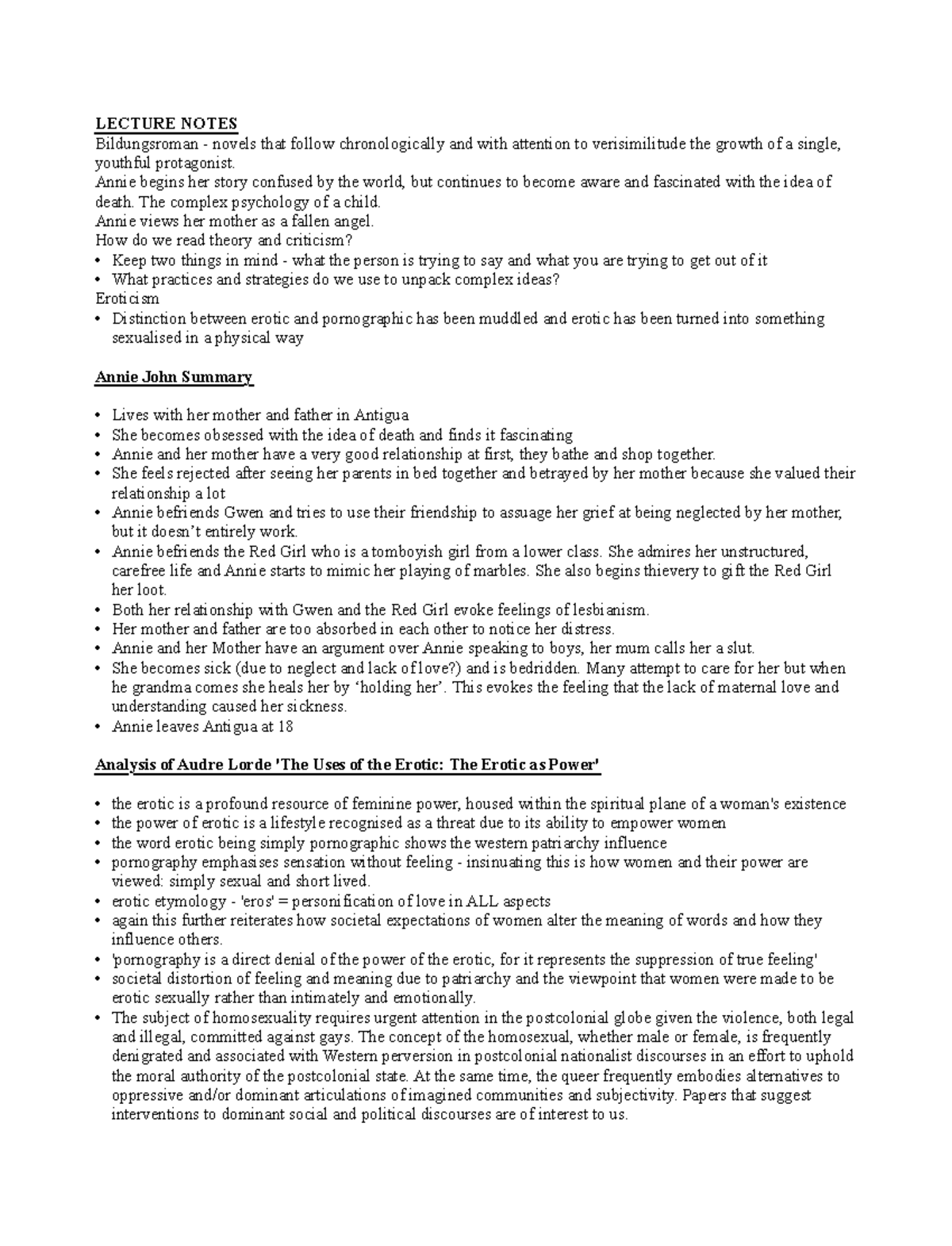 Week 2 Post-colonialism - LECTURE NOTES Bildungsroman - novels that ...