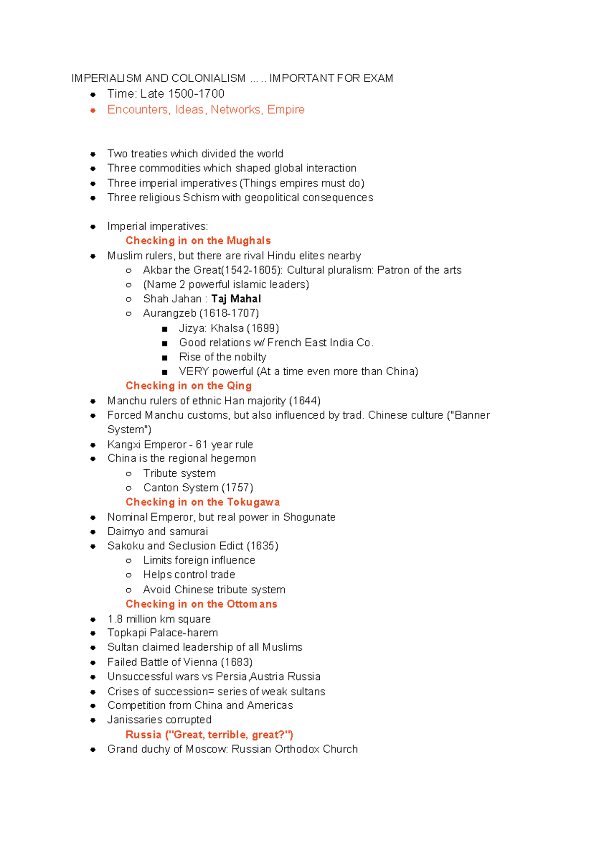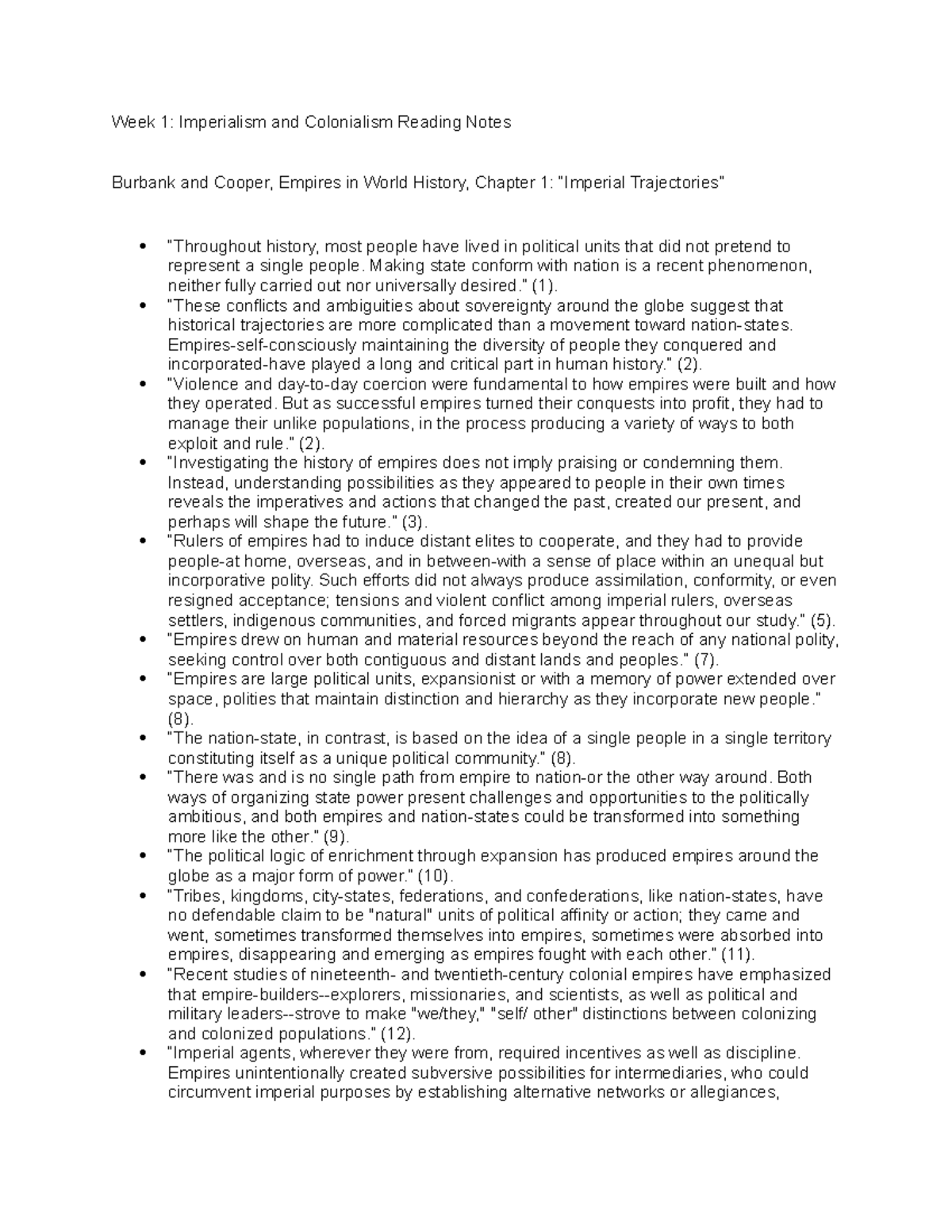 Lecture Notes 1 Imperialism and Colonialism - Week 1 Lecture 1 ...