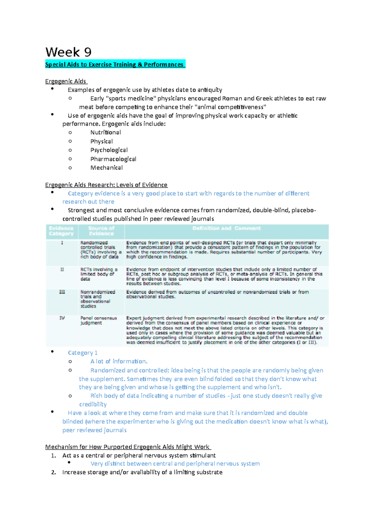 Week 9 - Lecture notes 9 - Week 9 Special Aids to Exercise Training ...