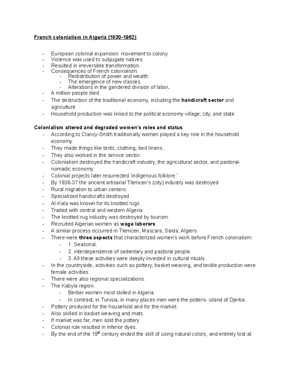 Week 6 - Complete Lecture notes - French colonialism in Algeria (1830 ...