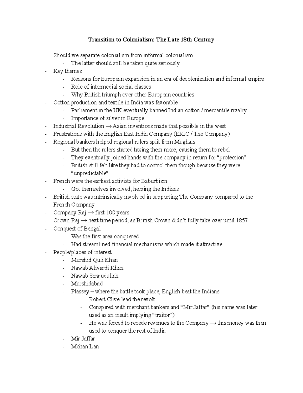 Phases of colonialism - Lecture notes - PHASES OF COLONIALISM IN INDIA ...