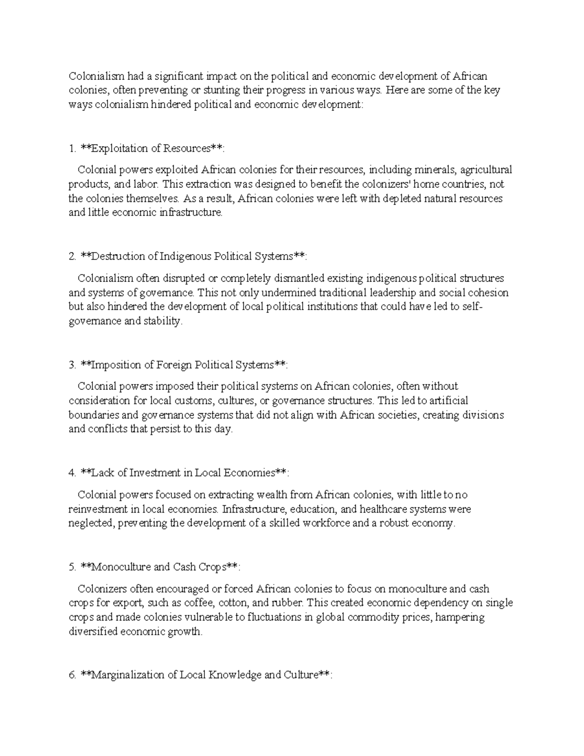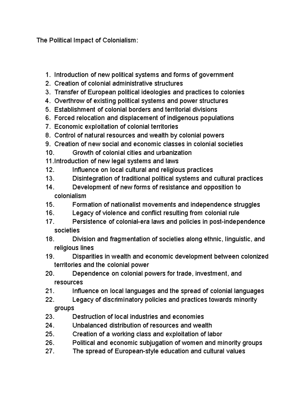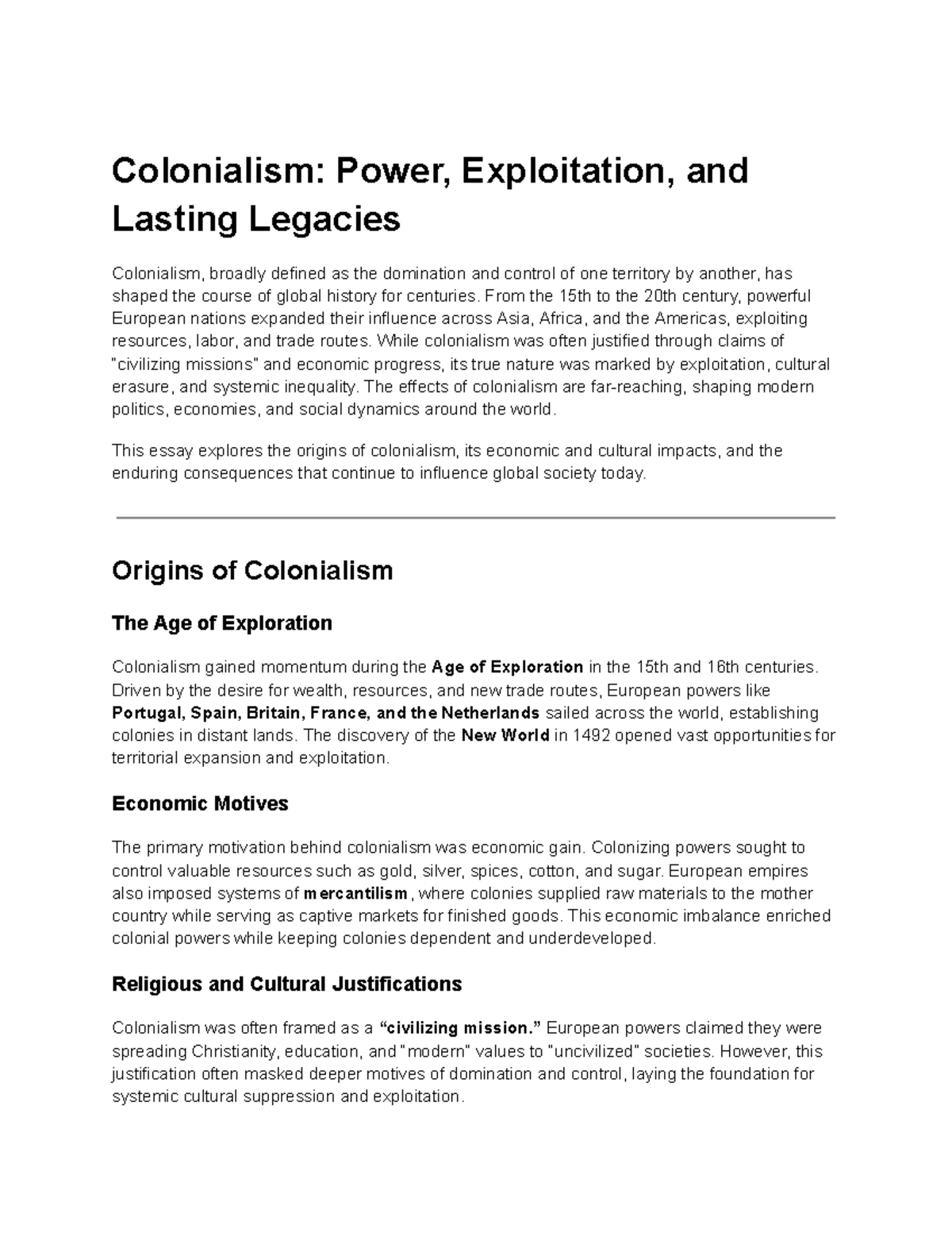 HIS Colonialism: Power, Exploitation, and Lasting Impacts - Studocu