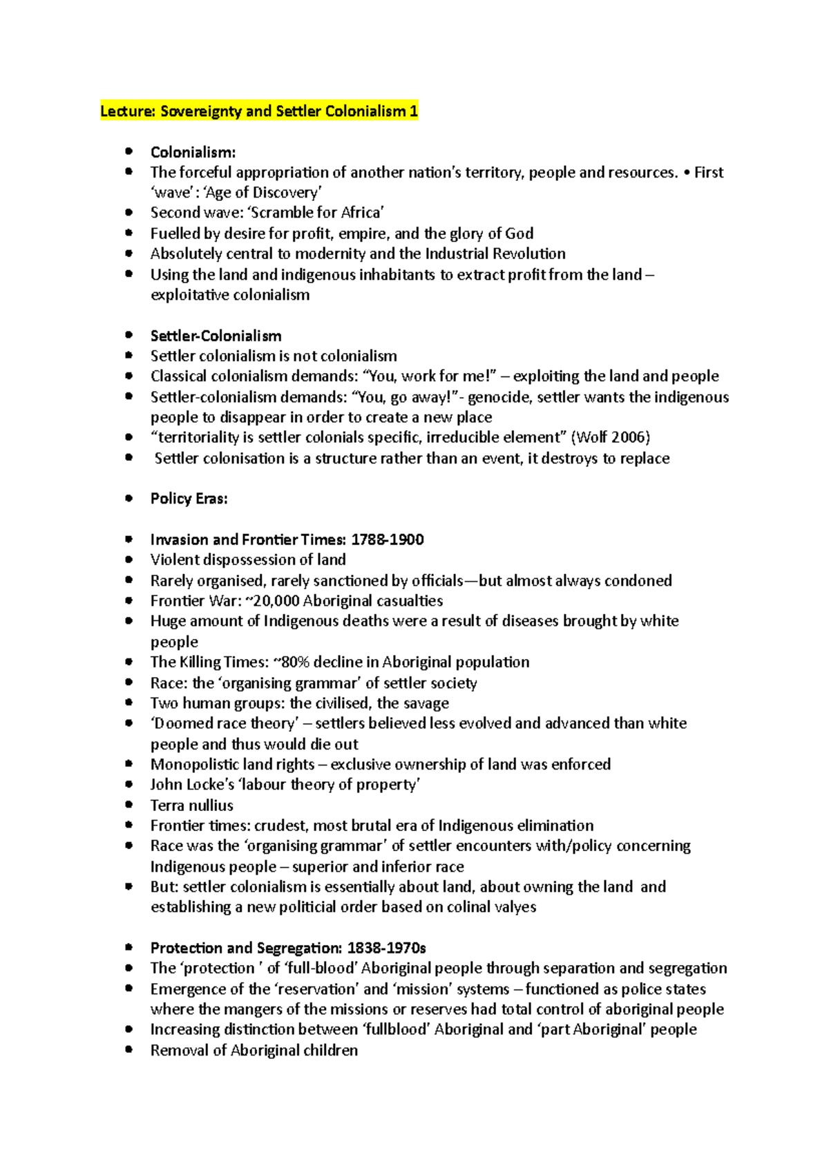 ARTS2821 Notes Lecture - ARTS2821: Colonialism: Resistance, Justice ...