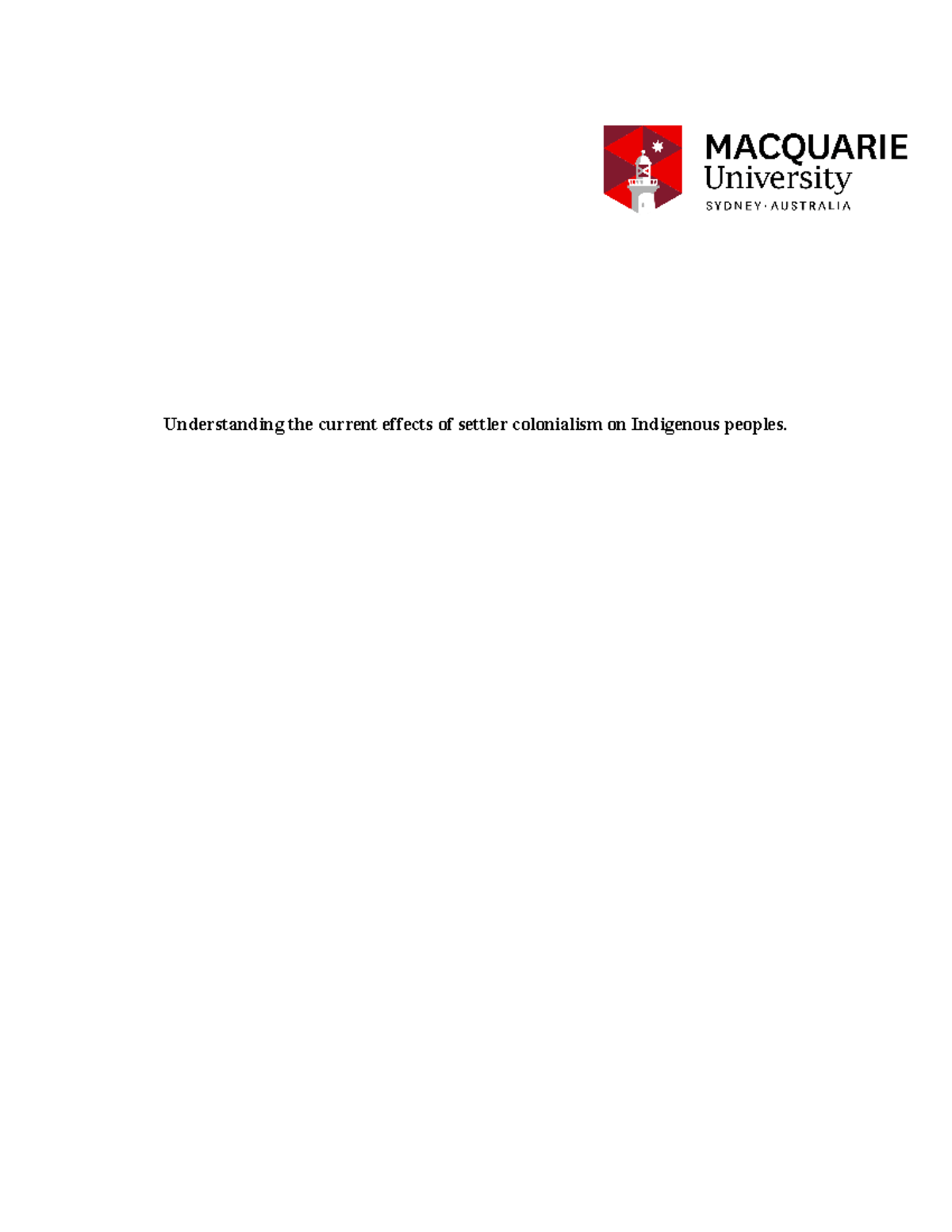 Final essay ABST1000 - Understanding the current effects of settler ...