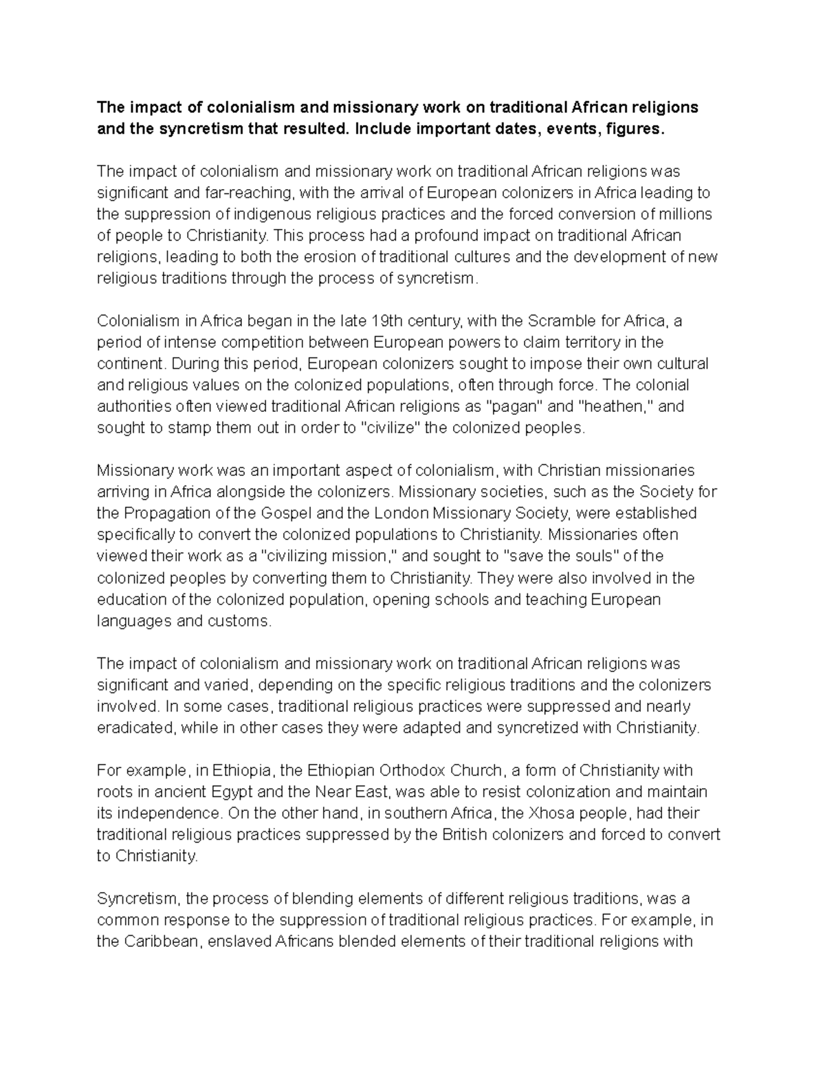 AFST Notes 8 - The impact of colonialism and missionary work on ...