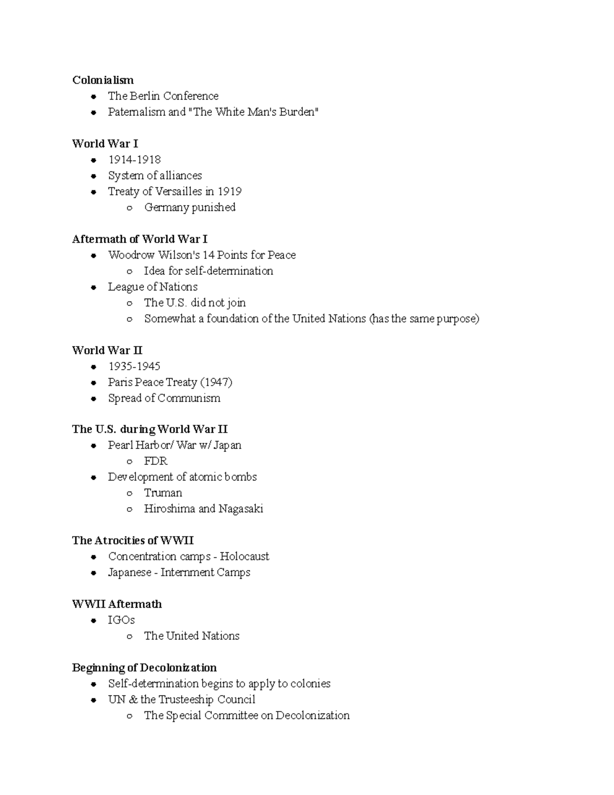 Global Security Old Issues, New Realities Notes - Colonialism The ...