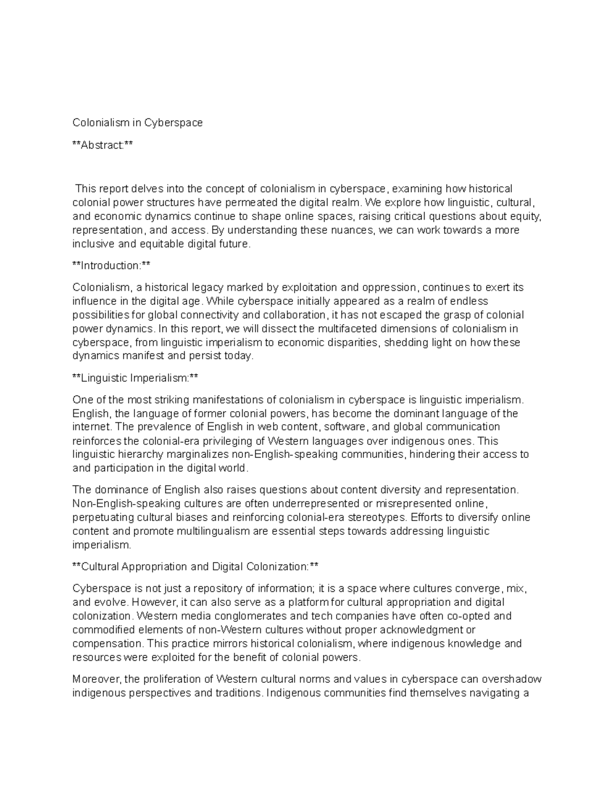 Colonialism in Cyberspace - We explore how linguistic, cultural, and ...