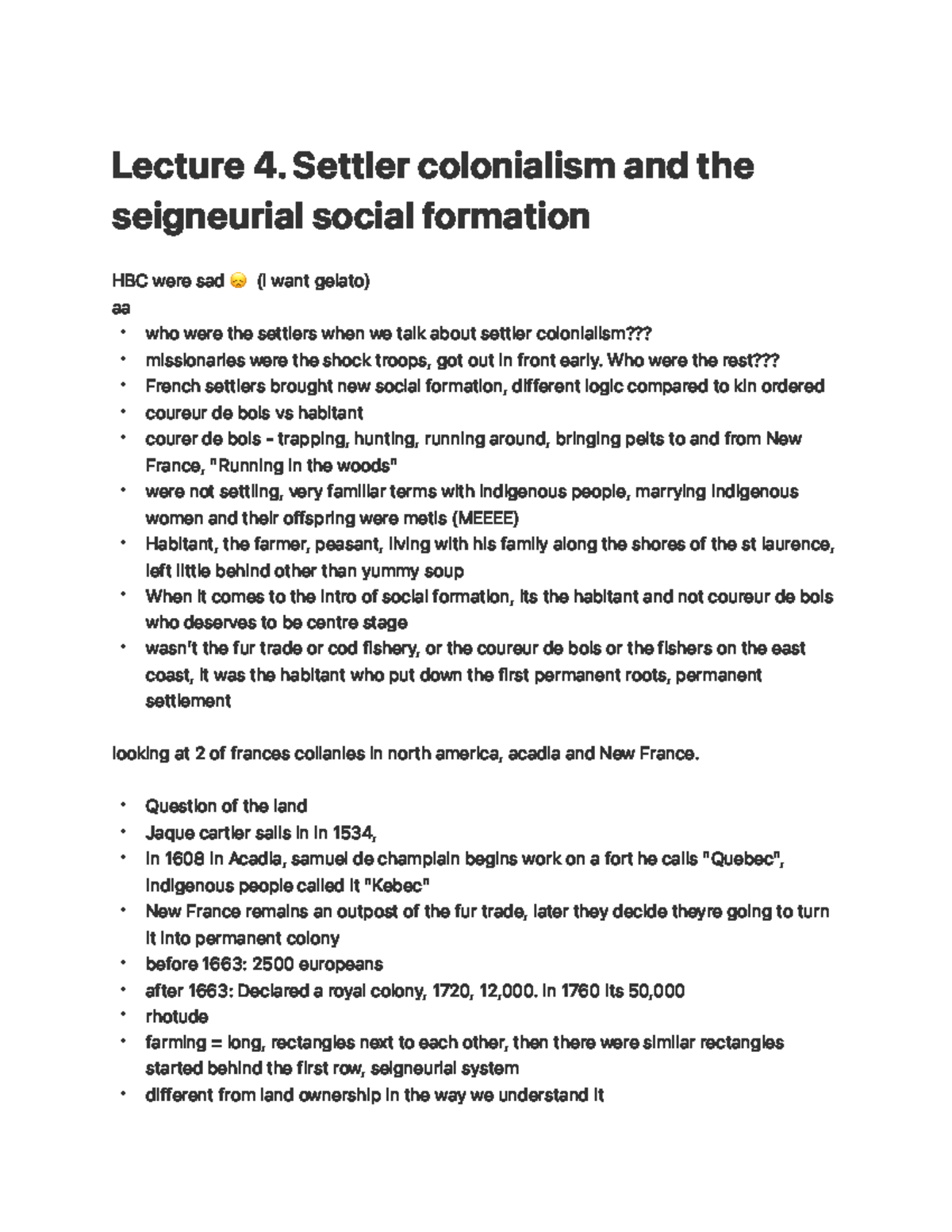 Lecture 4. Settler colonialism and the seigneurial social formation ...
