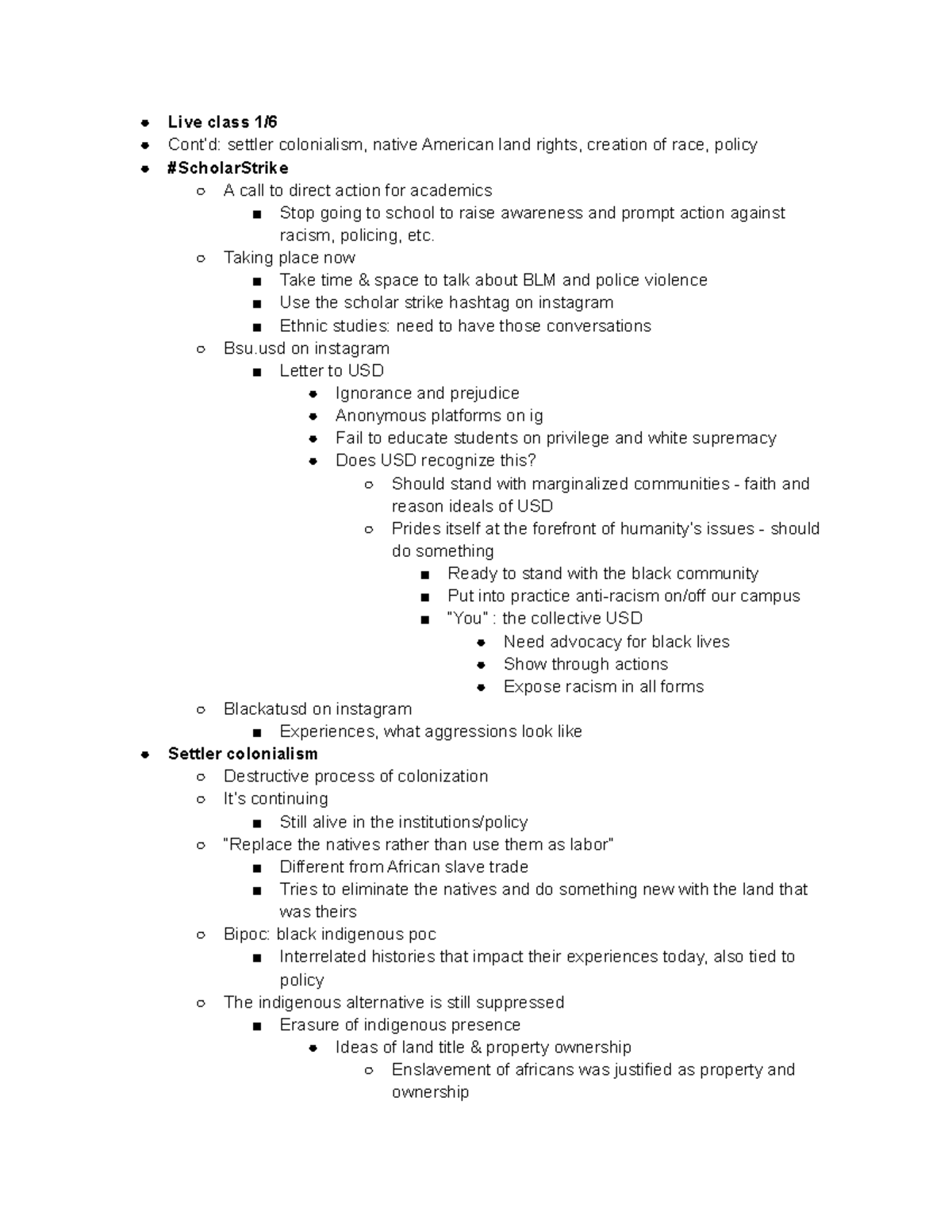 9 9 Lecture native Americans cont d - Live class 1/ Cont’d: settler ...