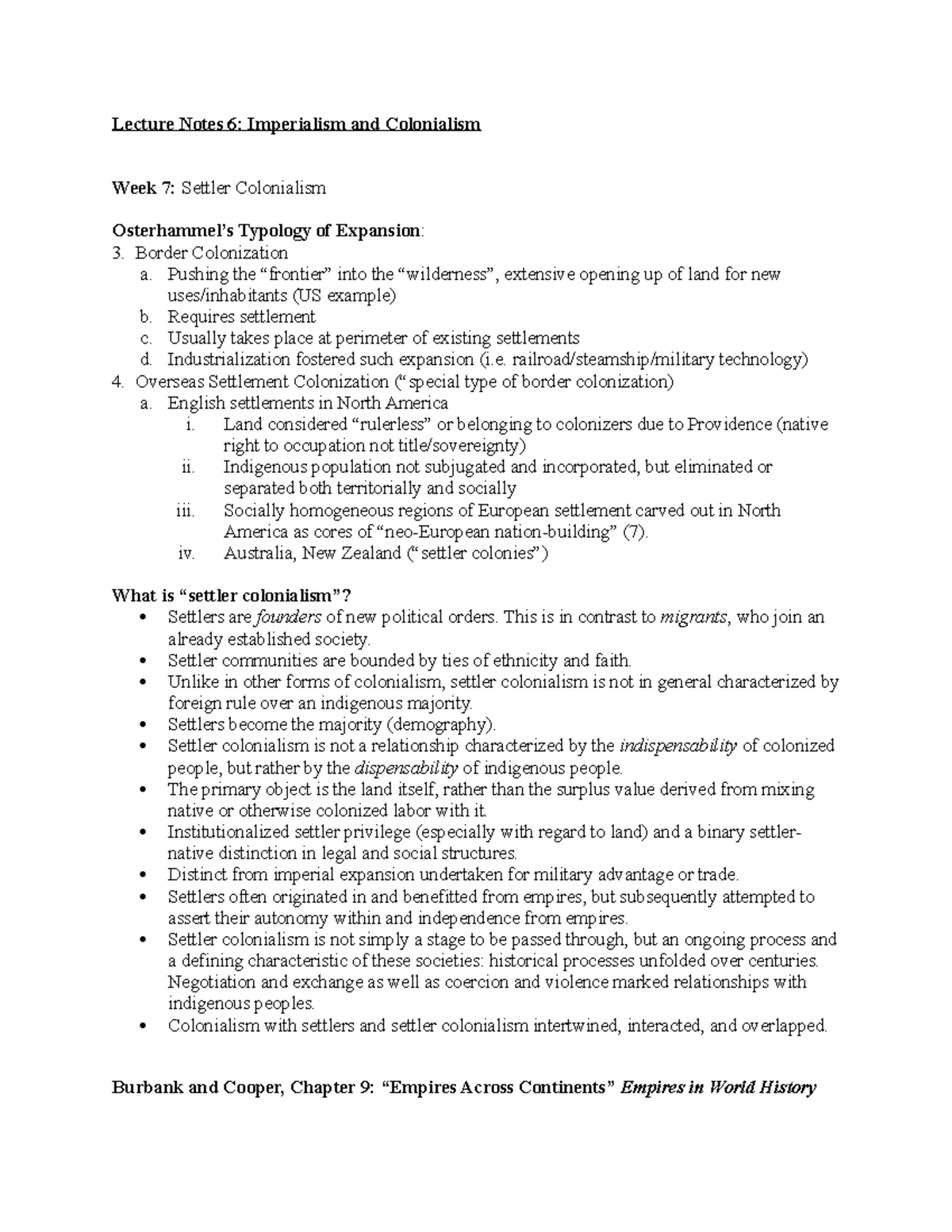 Lecture Notes 6 Imperialism and Colonialism - Lecture Notes 6 ...