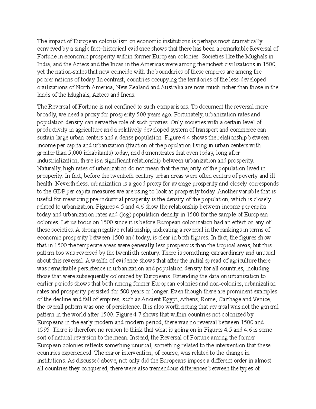 The Reversal of Fortune: Economic Impact of European Colonialism - Studocu