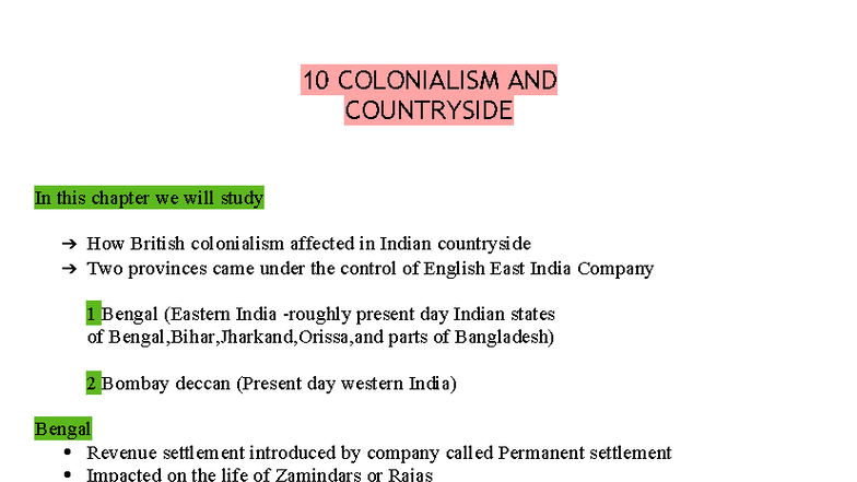 10 HISTORICAL IMPACT OF COLONIALISM ON INDIAN COUNTRYSIDE - Studocu
