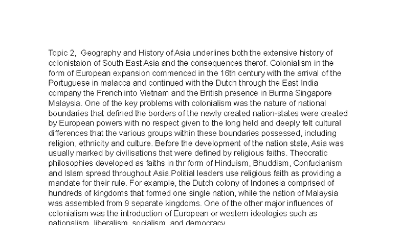 Geography and History of Asia: Colonialism and Its Impact (GHA 102 ...