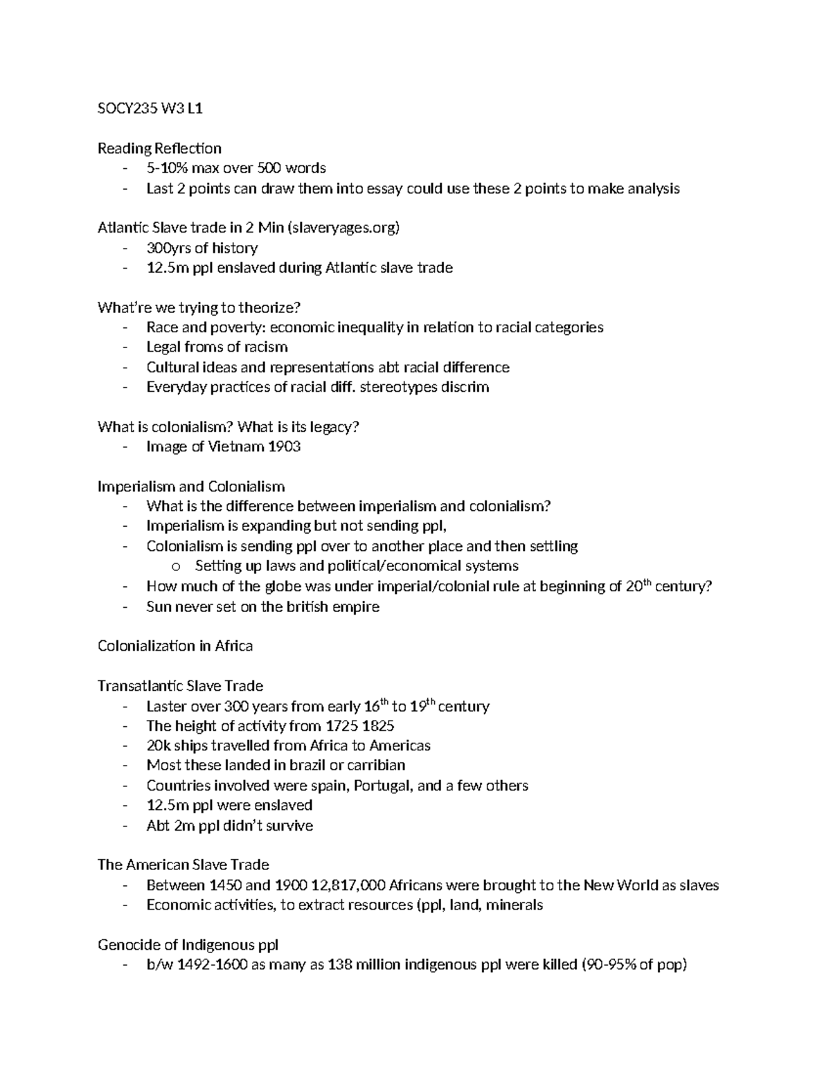 SOCY235 W3 L1 - Reflection on Atlantic Slave Trade and Colonialism ...