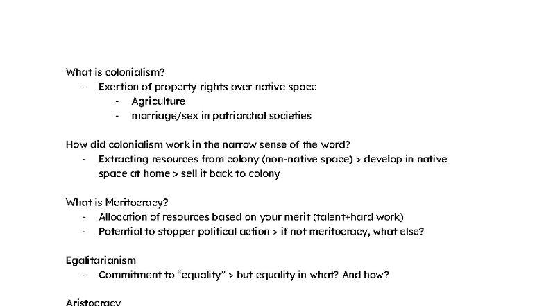 Tutorial 13 Notes: Colonialism, Meritocracy, and Inequality - Studocu