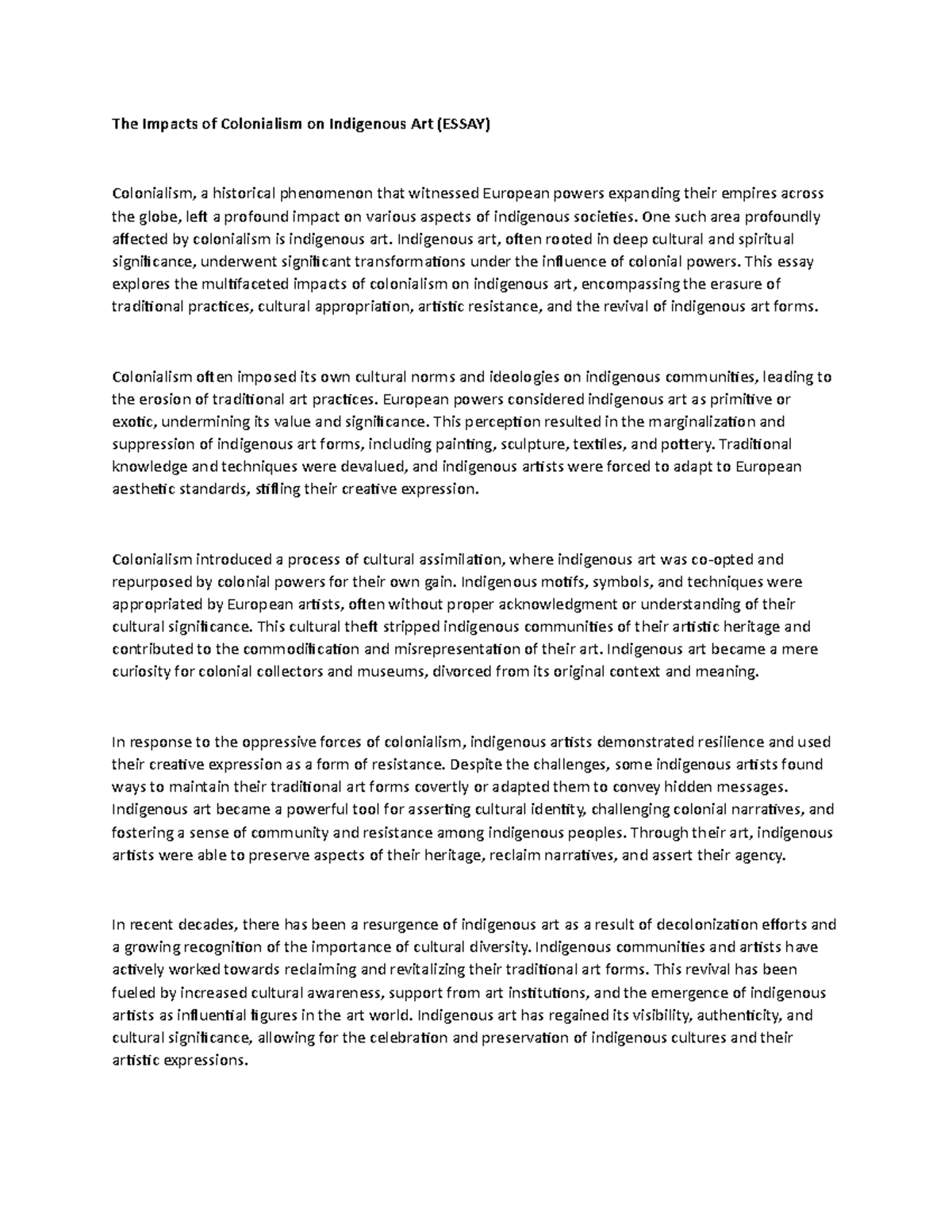 The Impacts of Colonialism on Indigenous Art (ESSAY Notes) - Studocu
