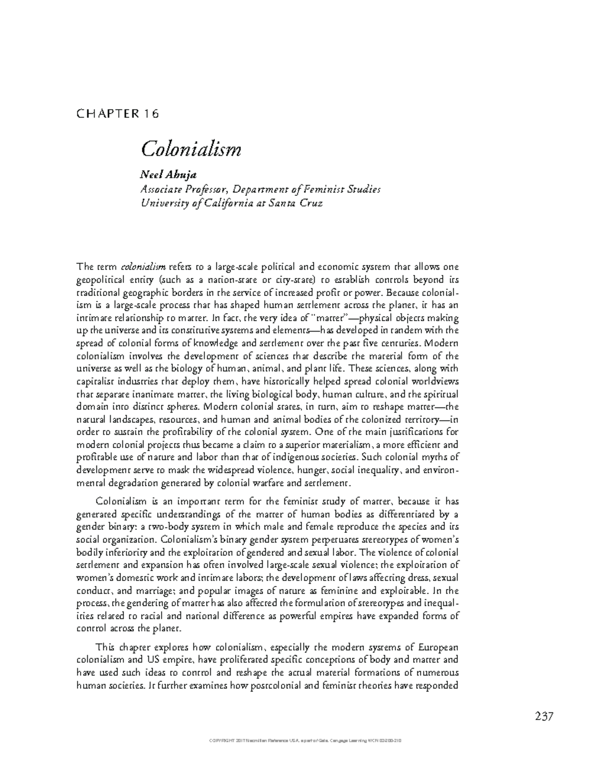 CHAPTER 16: Colonialism - Study Notes (Feminist Studies) - Studocu