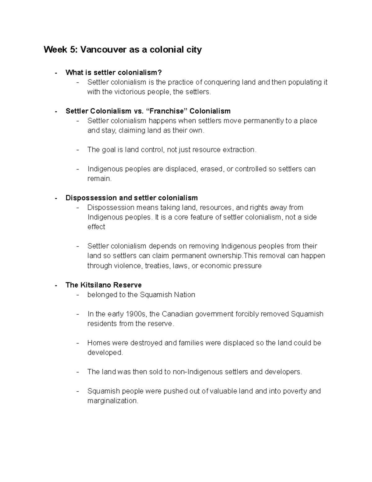 GEO 210: Settler Colonialism and Racialization in Vancouver - Complete ...