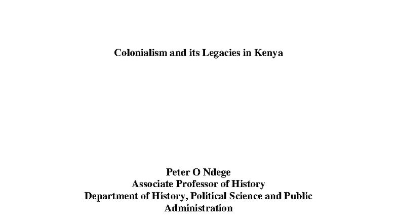 HIST 19699 - Colonialism and Its Legacies in Kenya: A Lecture Analysis ...