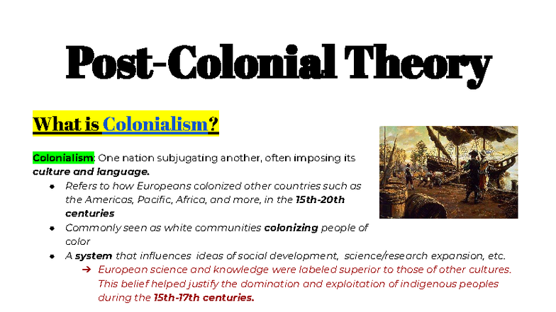 WEEK 9: Postcolonialism - Week 9: Postcolonialism Lecture Post ...