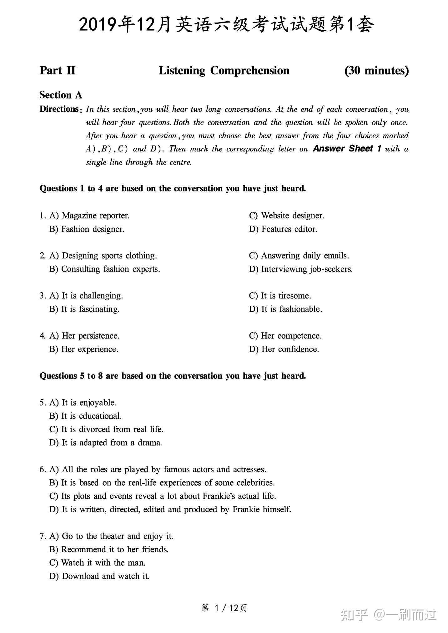 2019年12月英语六级考试真题及解析(全3套) - 知乎