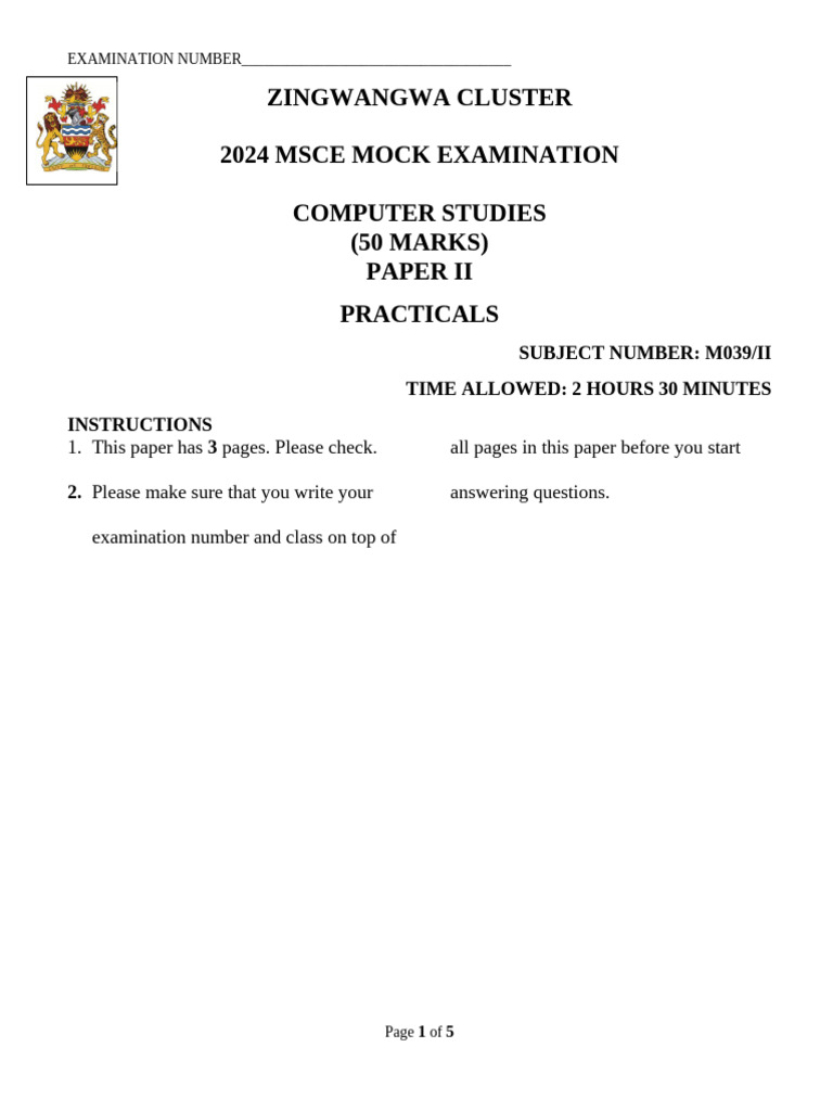 Computer Studies Practical Paper 2 | PDF | Computer Science ...
