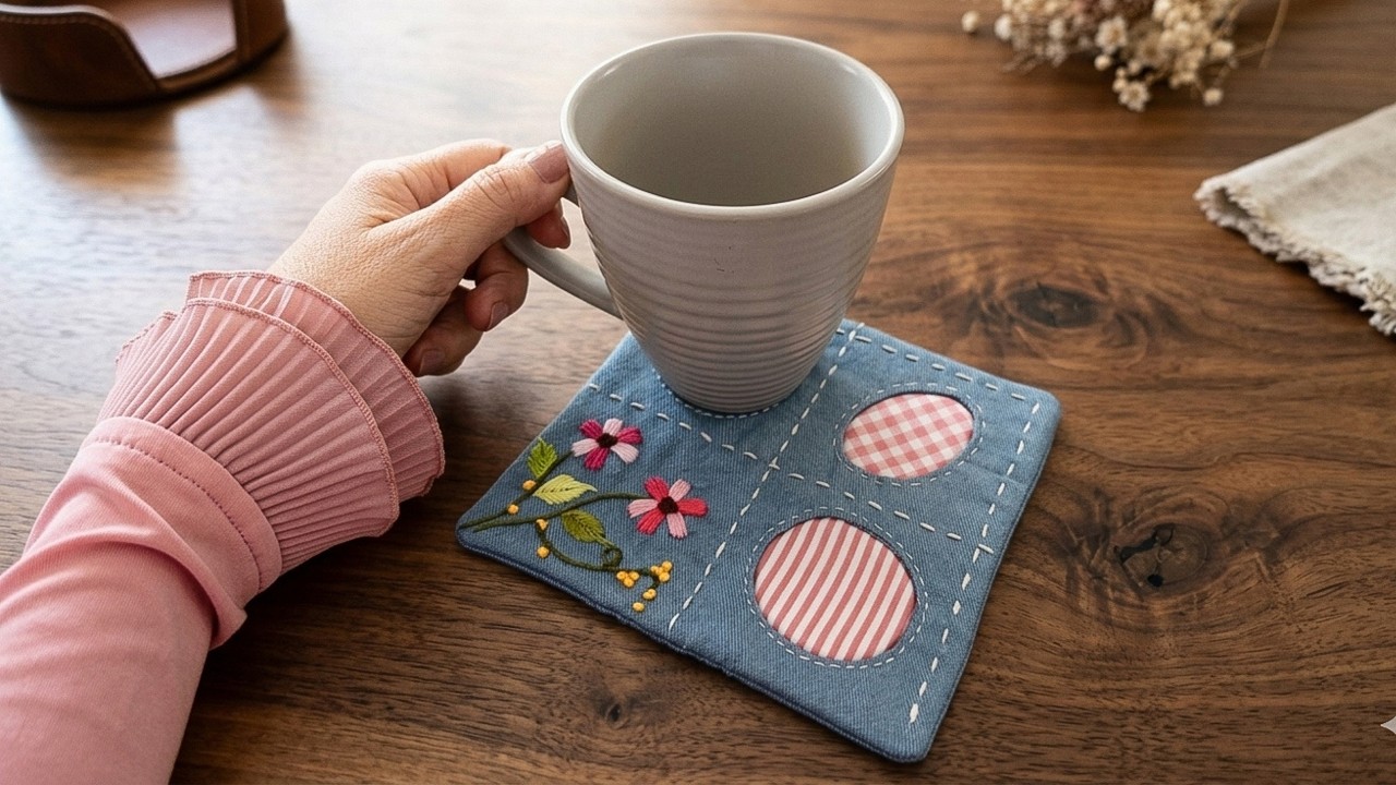 Easy Patchwork & Embroidery Mug Mat | Perfect for Beginners - YouTube