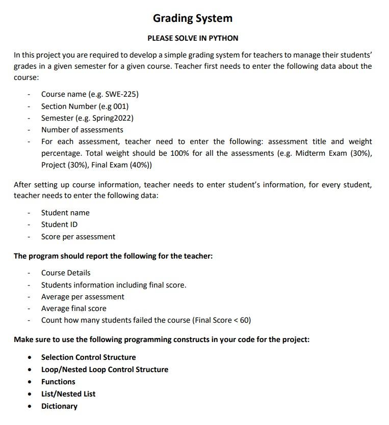 Solved Grading System PLEASE SOLVE IN PYTHON In this project | Chegg.com