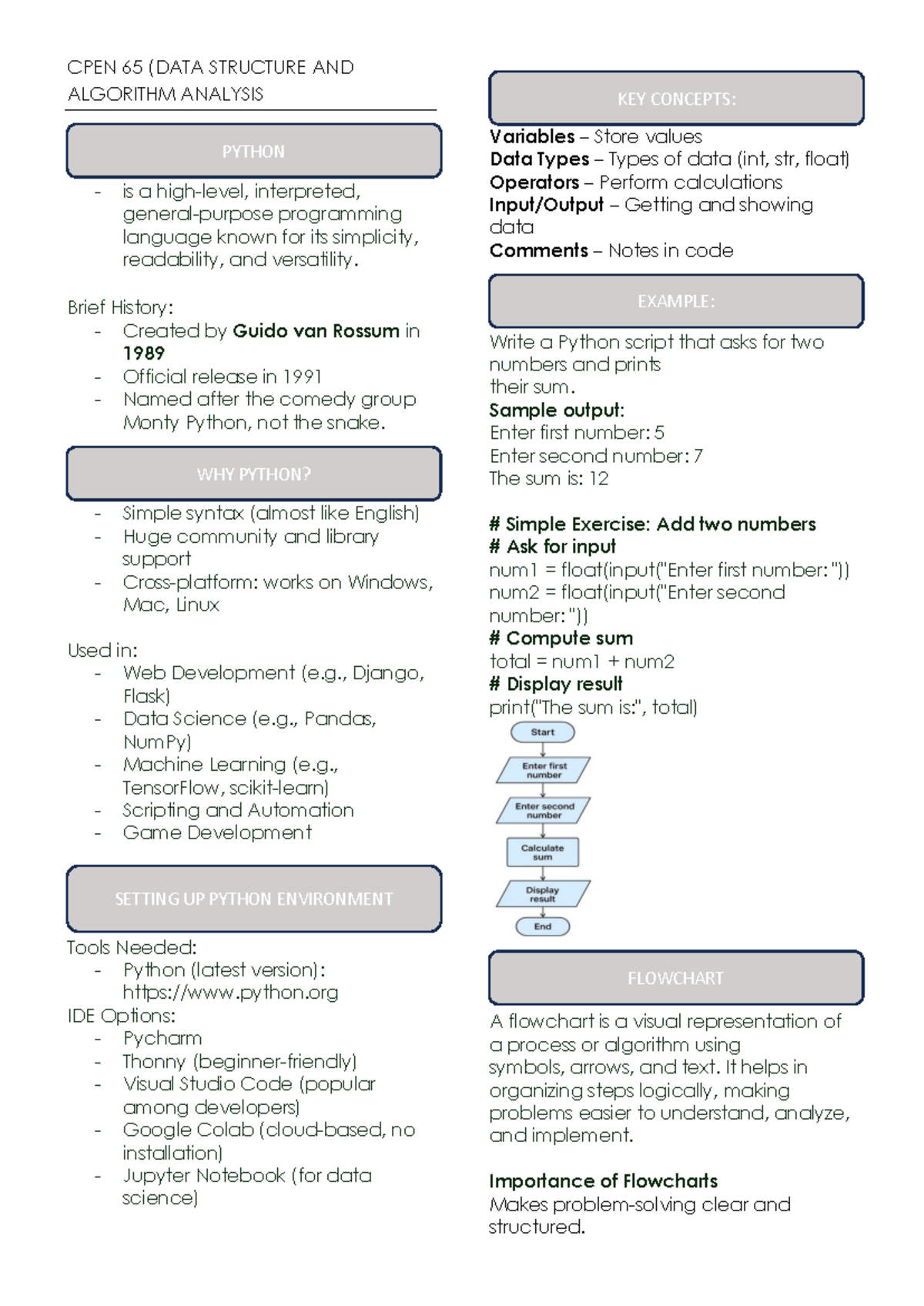 CPEN 65 - DSA Chapter 2: Python Language & History Overview - Studocu