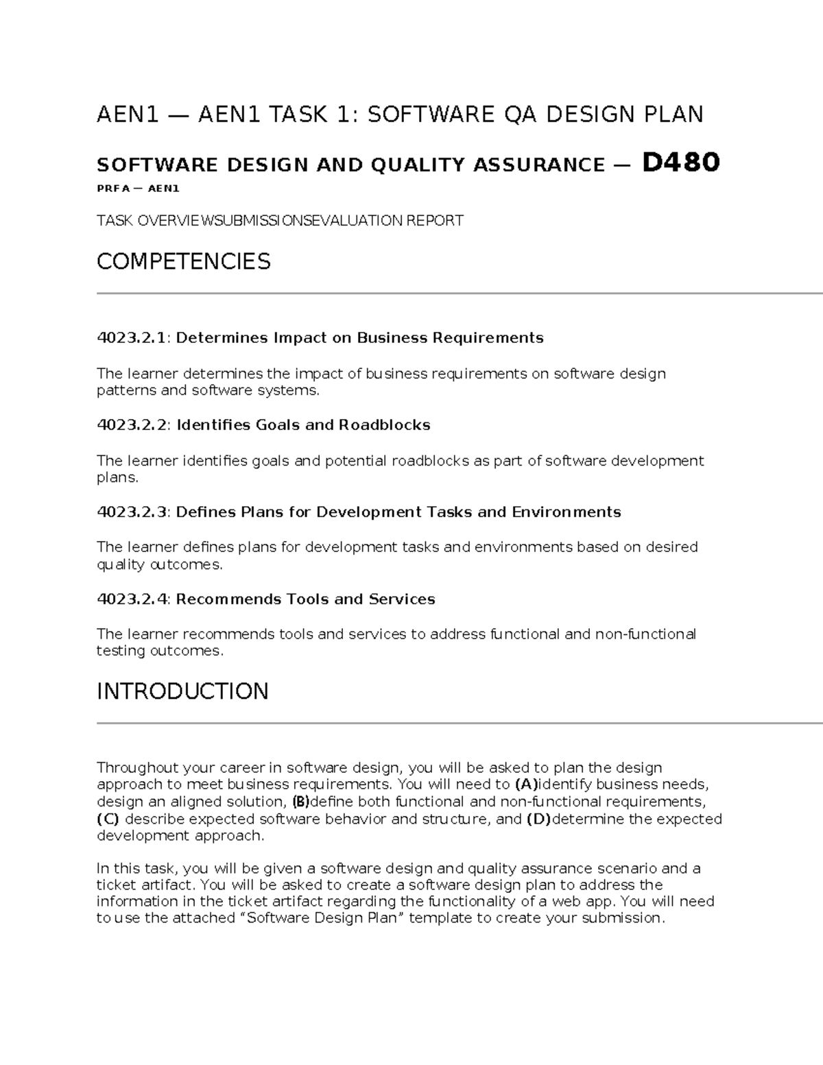 AEN1 - Task 01: Software QA Design Plan Submission Guidelines - Studocu