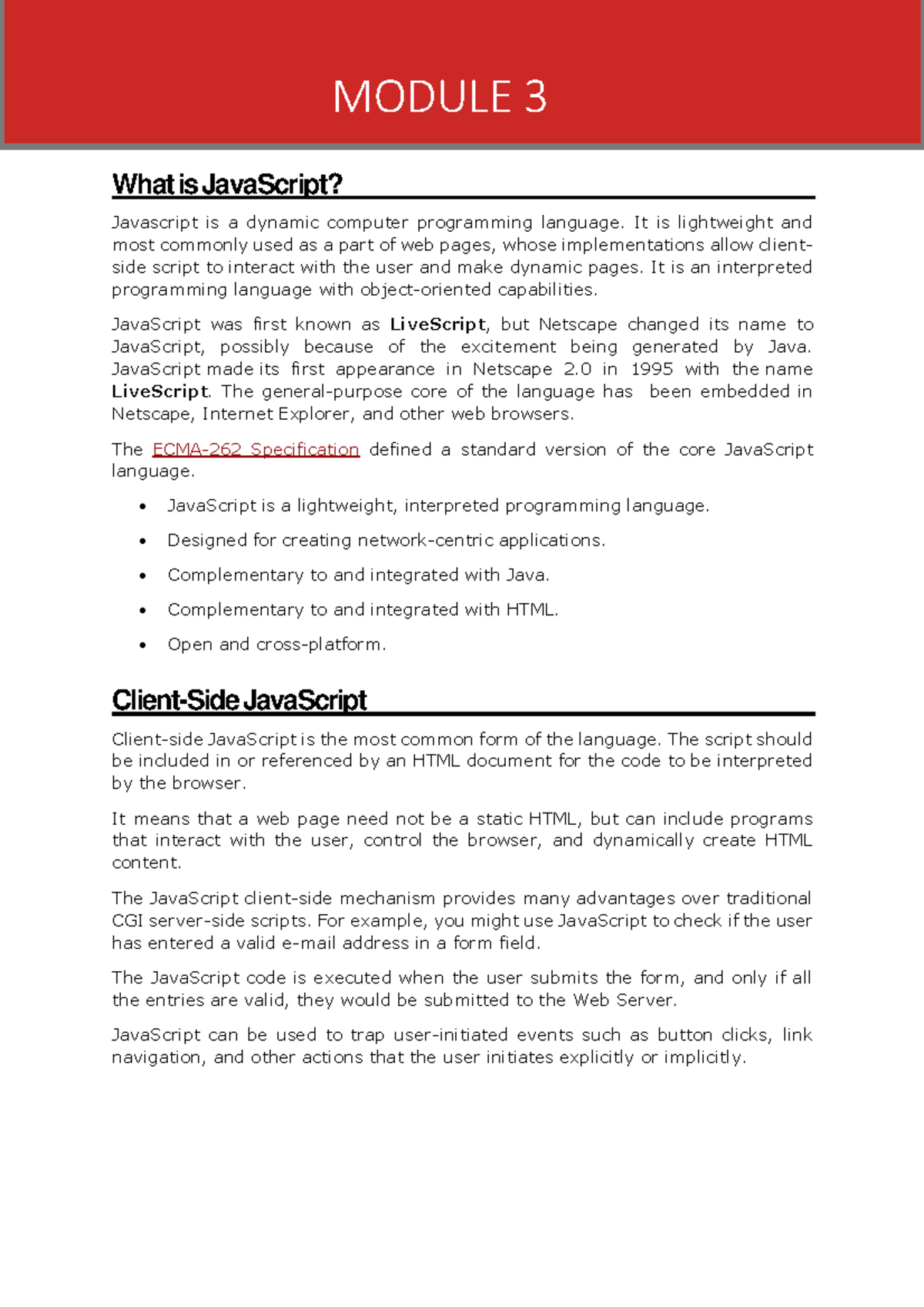 Module 3: Introduction to JavaScript in Web Programming - Studocu