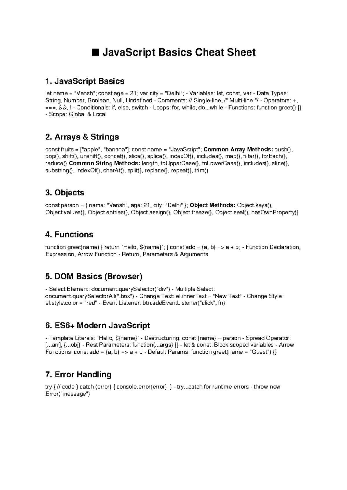 JavaScript 101: Comprehensive Cheatsheet for Quick Reference - Studocu