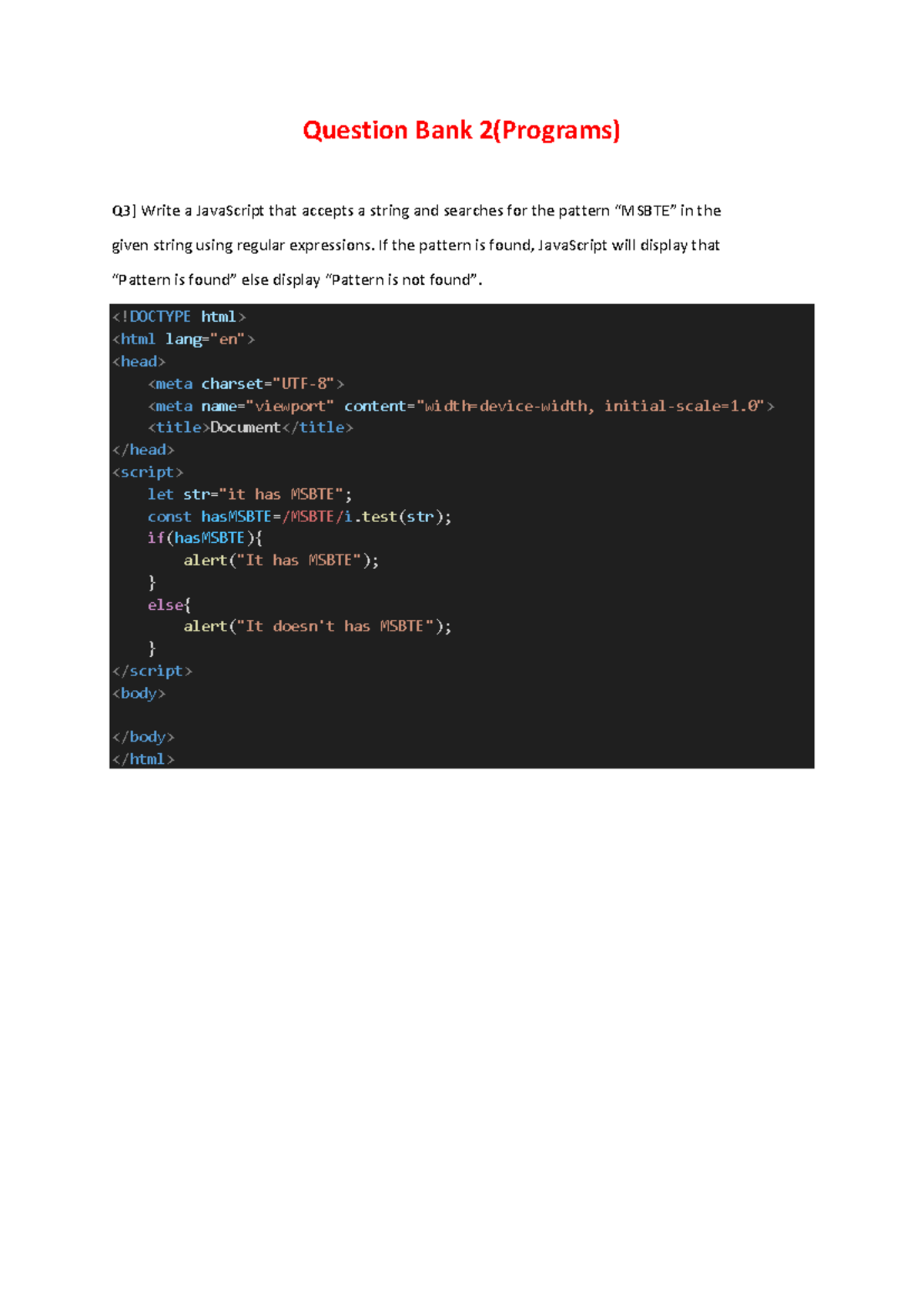 JavaScript Programming Question Bank 2 (CS101) - Studocu