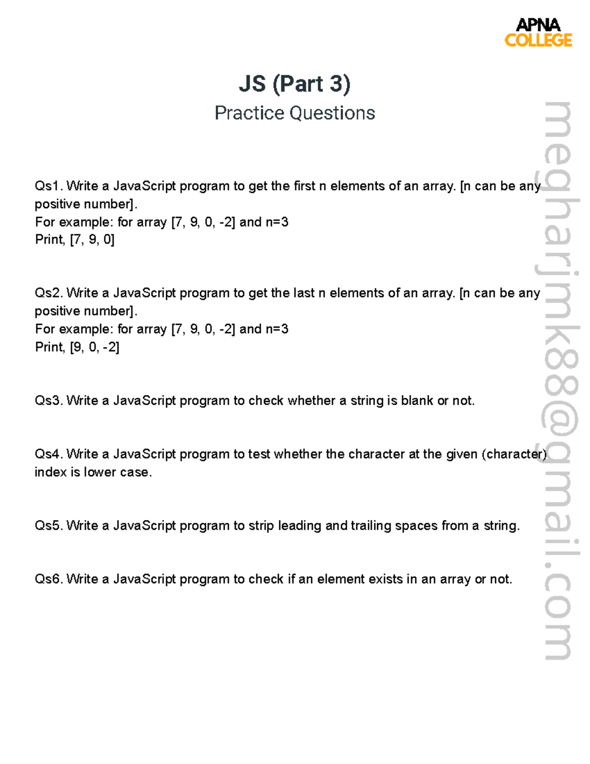 JS (Part 3) Practice Questions - JavaScript Notes - Studocu