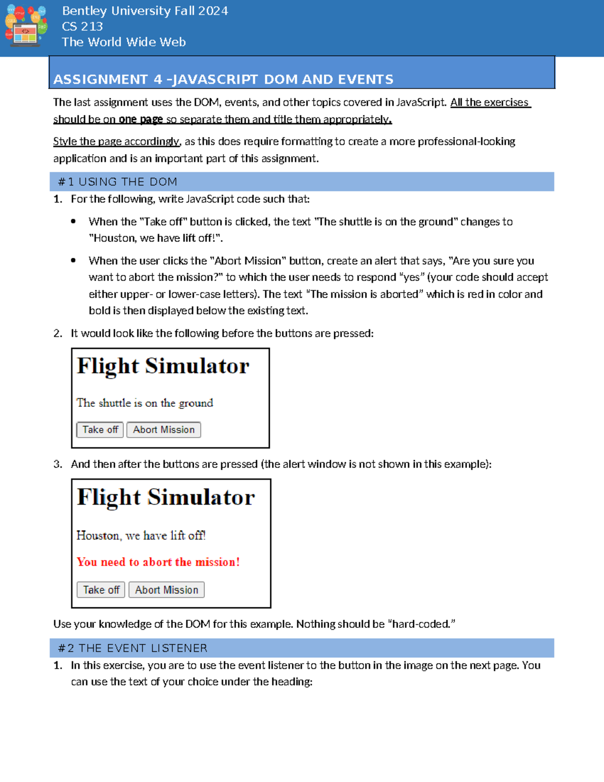 CS 213 Assignment 4: JavaScript DOM and Events Application - Studocu