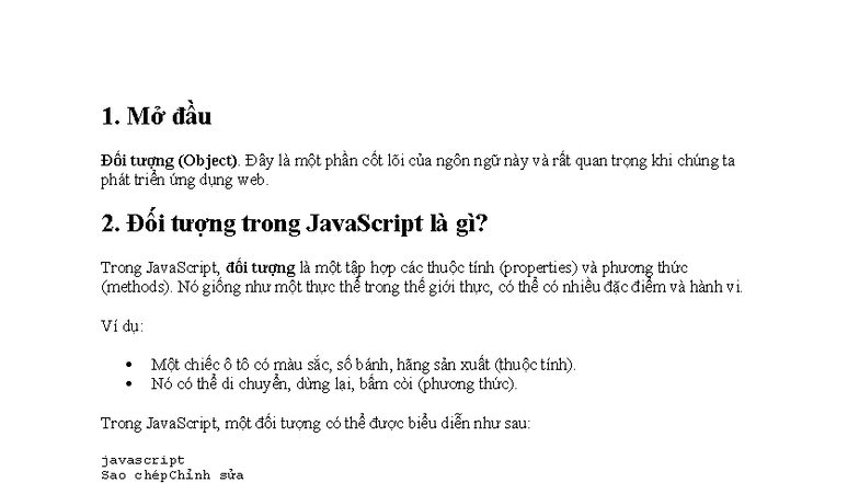 JavaScript Objects: Core Concepts and Creation Methods (Doc1) - Studocu