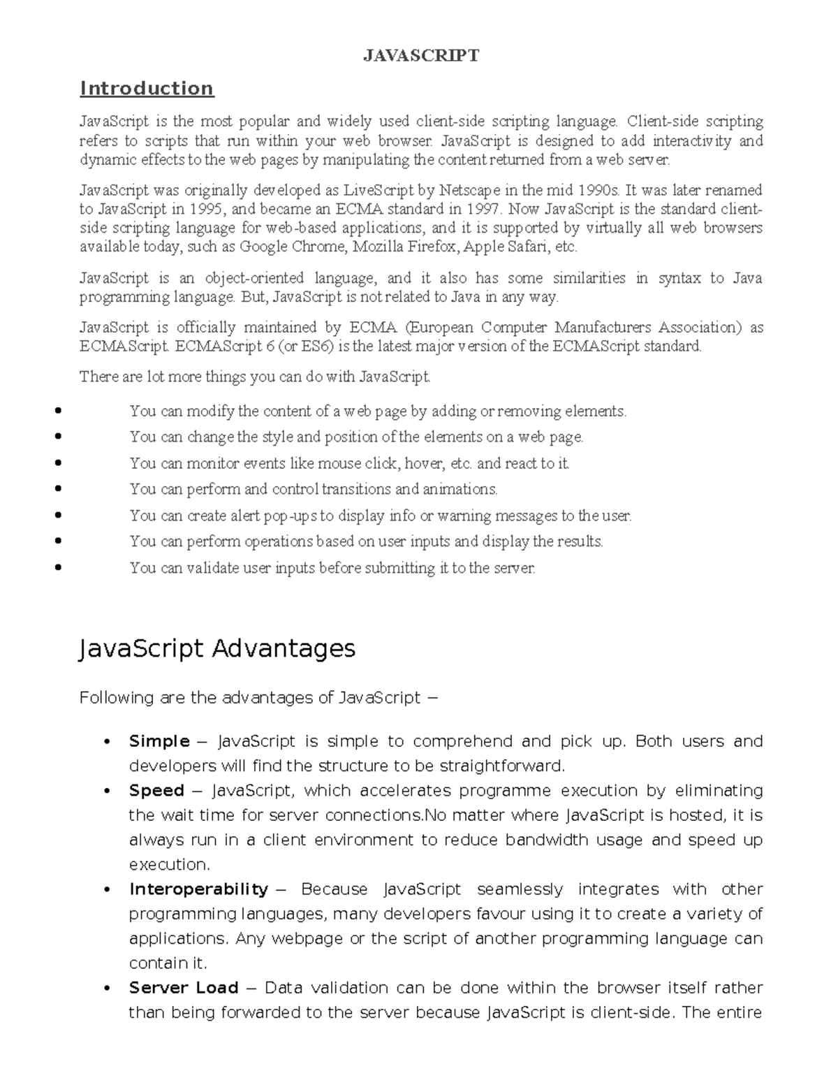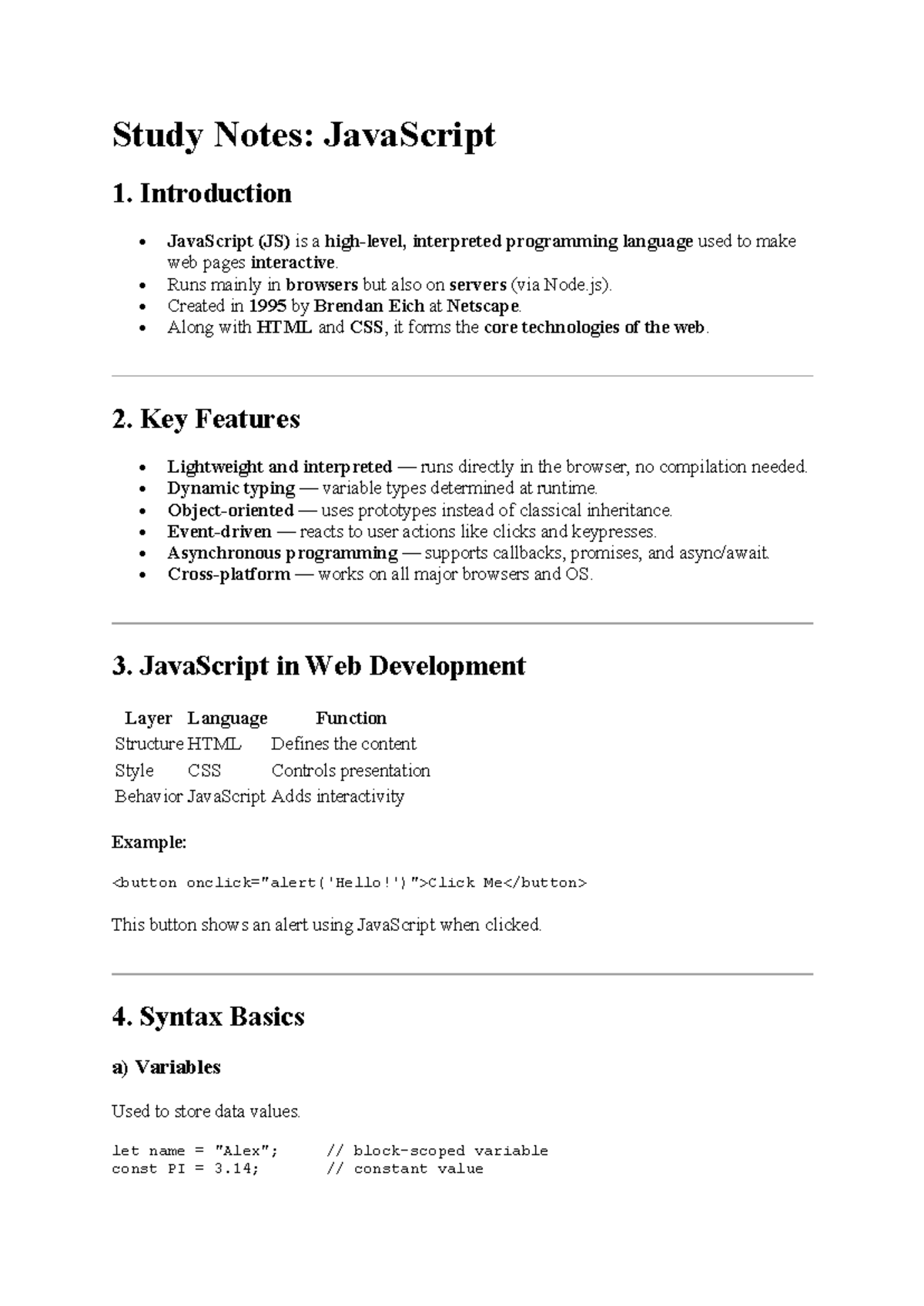 Study Notes: JavaScript Overview and Key Features - Studocu