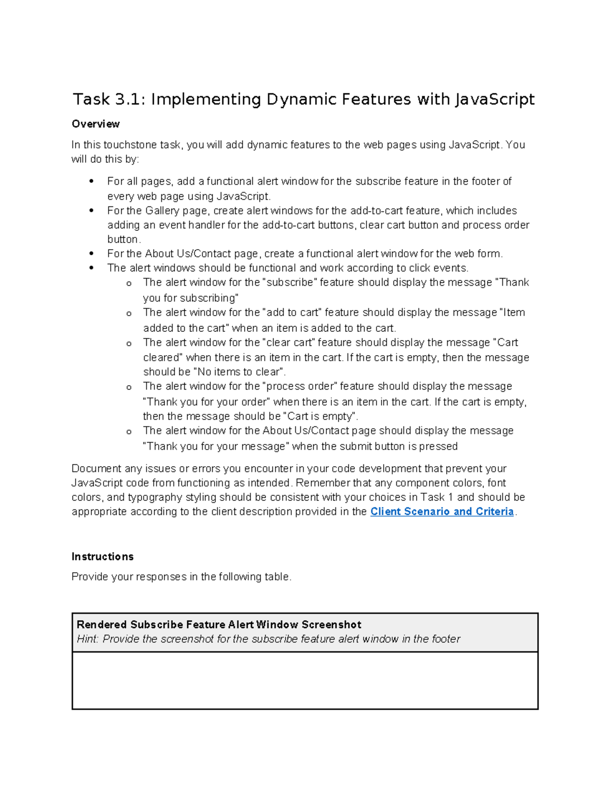 Task 3.1: Dynamic JavaScript Features Implementation Overview - Studocu