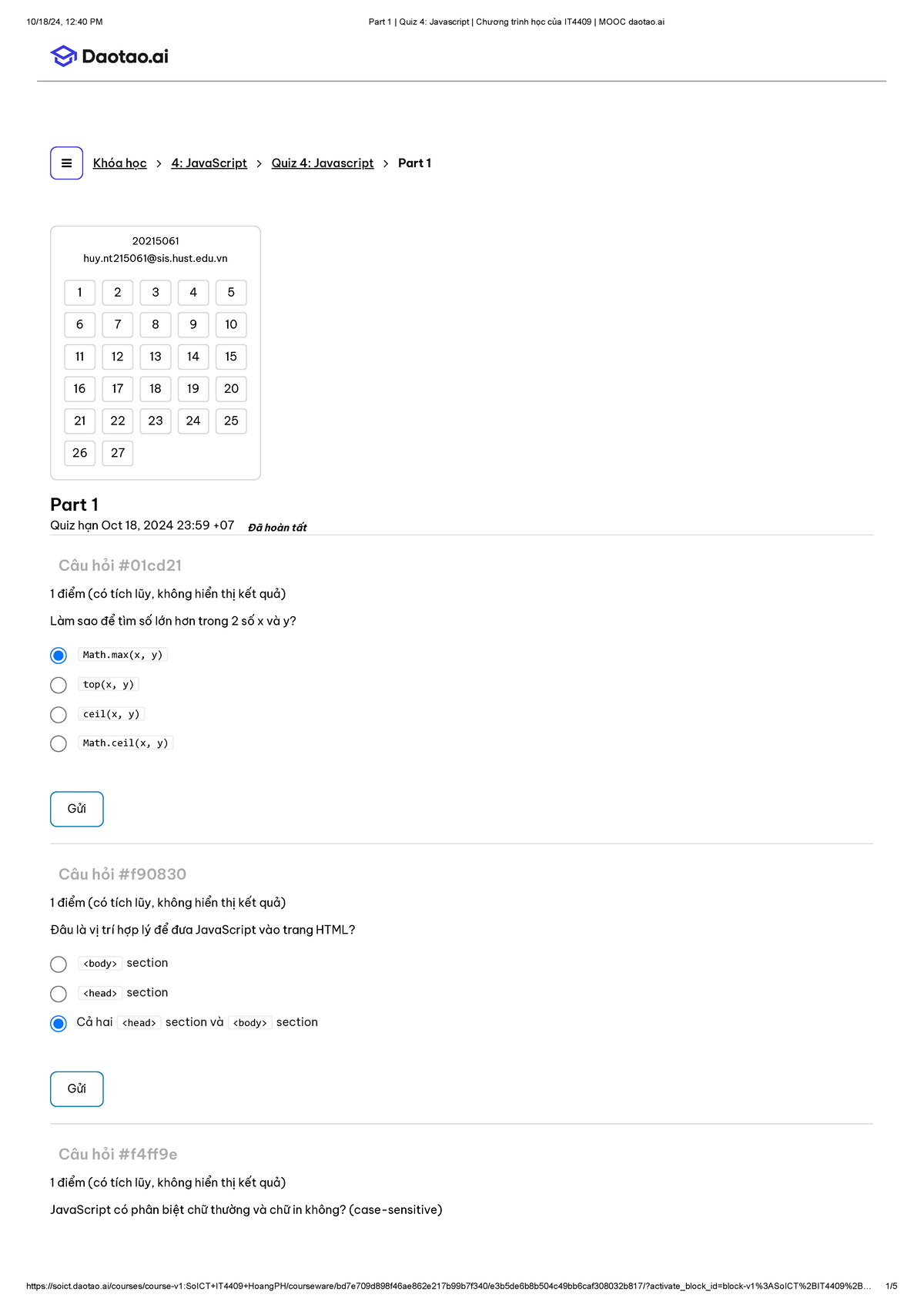 IT4409 Final Quiz 4: JavaScript Part 1 Notes and Questions - Studocu