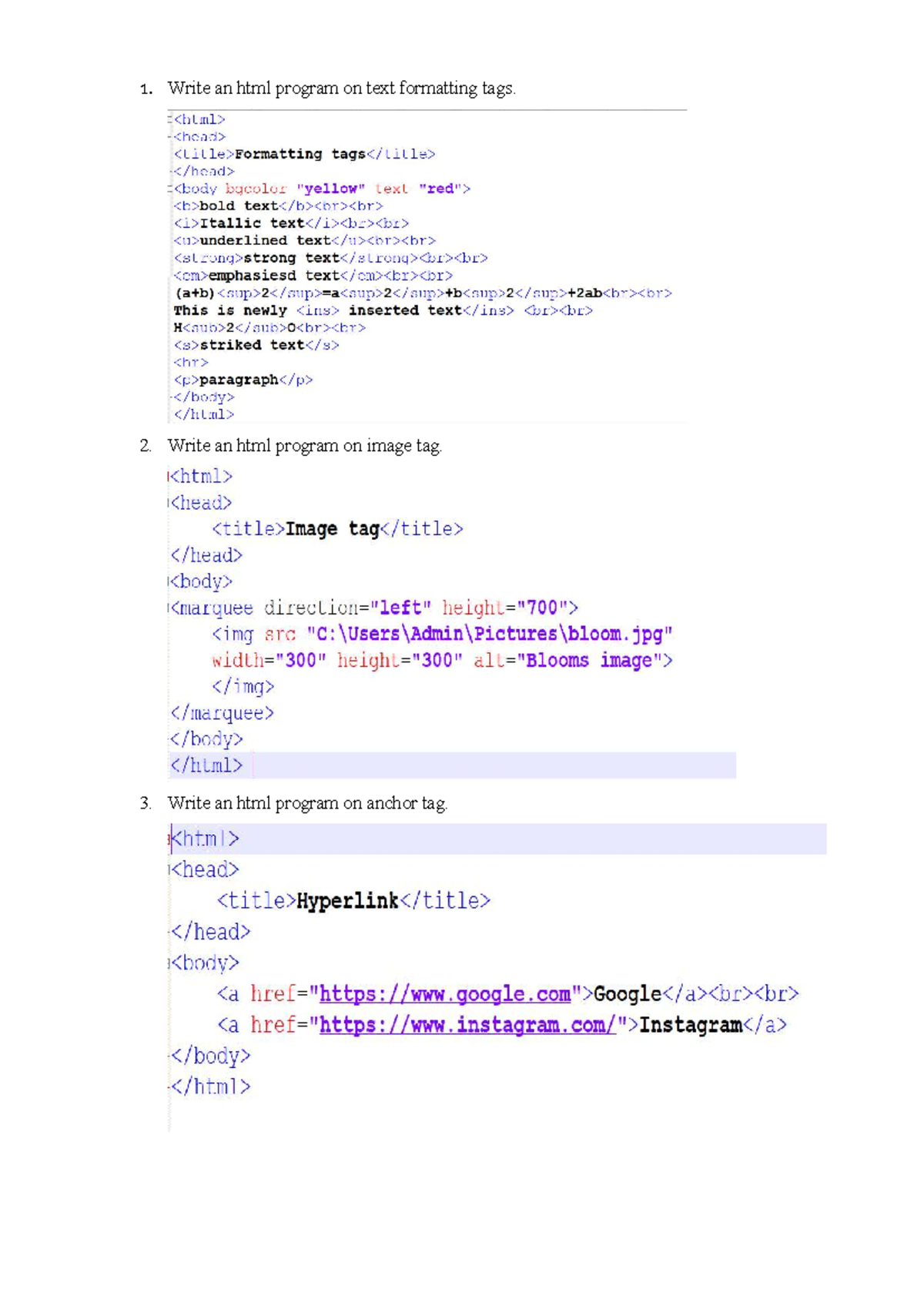 HTML Lab Programs: Text Formatting, CSS, and JavaScript Examples - Studocu