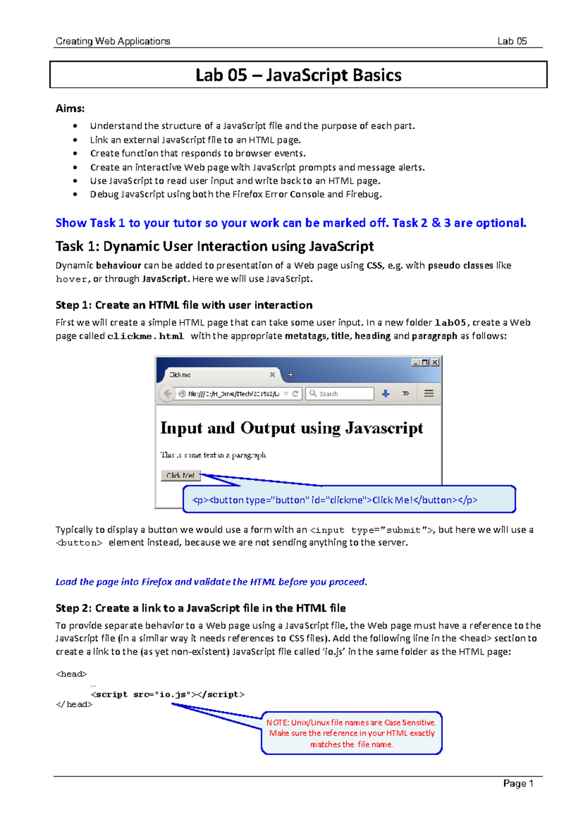 Lab05 instruction-1 - Lab 05 – JavaScript Basics Aims: • Understand the ...