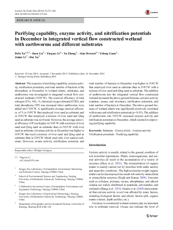 (PDF) Purifying capability, enzyme activity, and nitrification ...