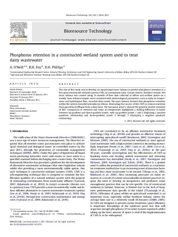 (PDF) Phosphorus retention in a constructed wetland system used to ...