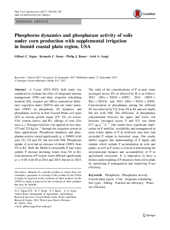 (PDF) Phosphorus dynamics and phosphatase activity of soils under corn ...