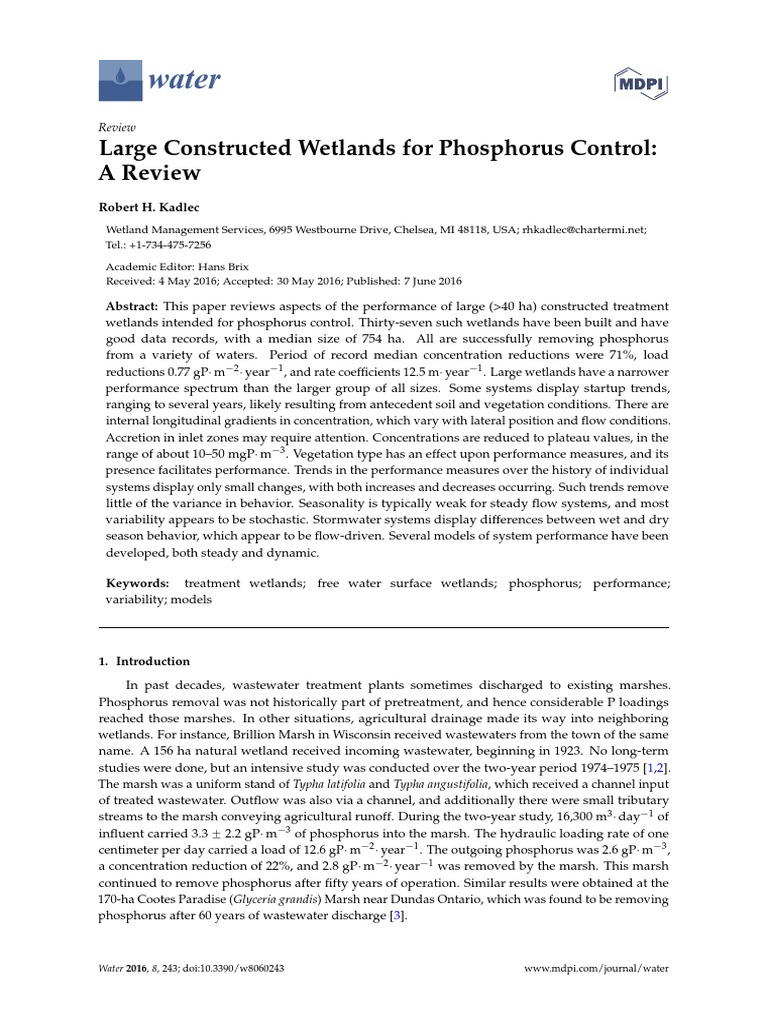 Water: Large Constructed Wetlands For Phosphorus Control: A Review ...